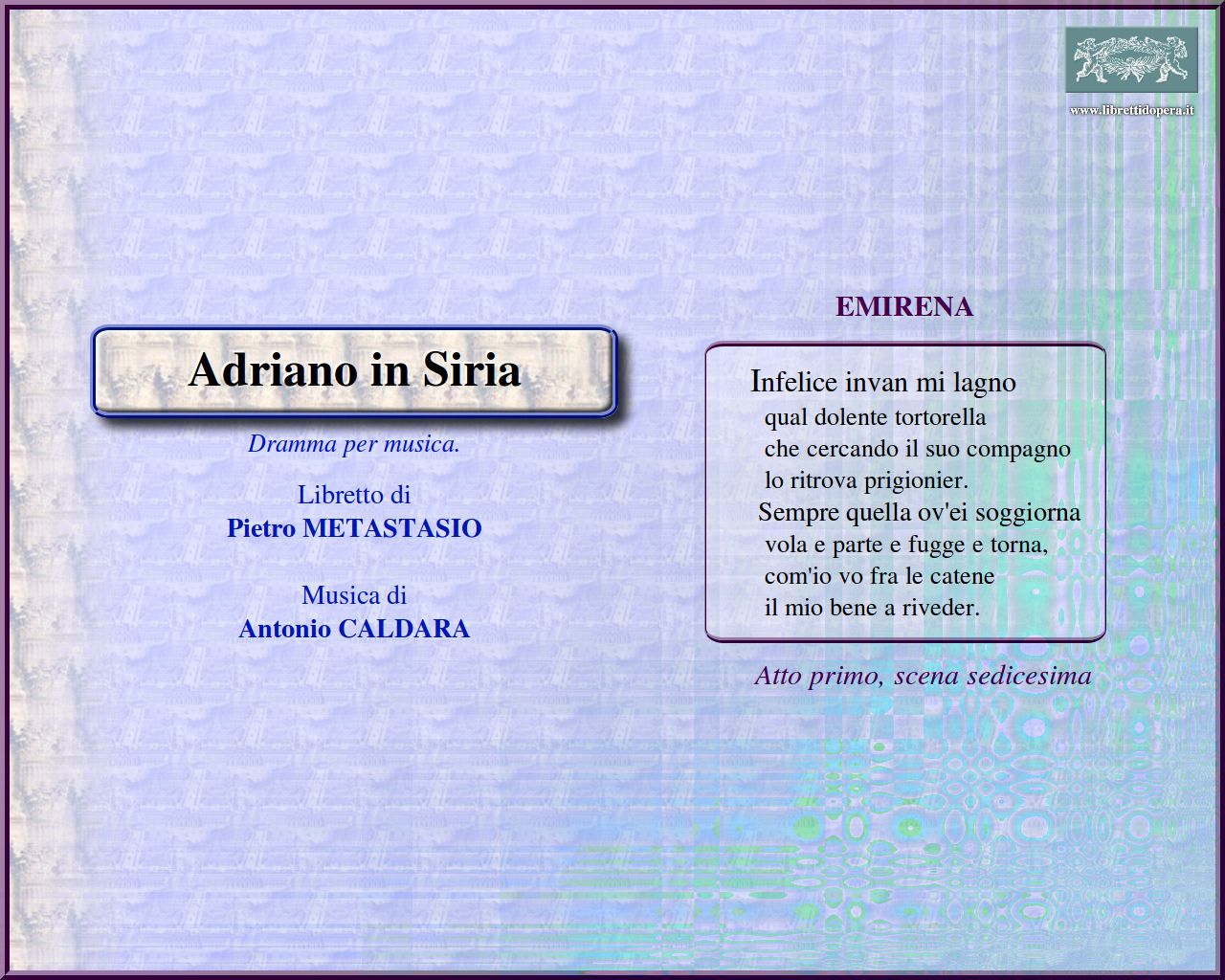 | Vincenzo Legrenzio Ciampi | Venezia, Teatro San Cassiano | carnevale 1748 | con titolo Adriano |