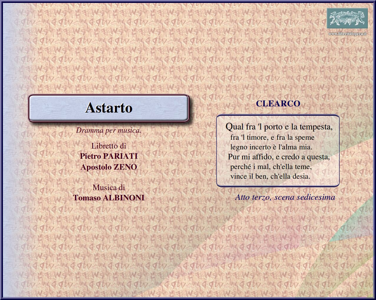 Libretto di Pietro PARIATI, Apostolo ZENO.