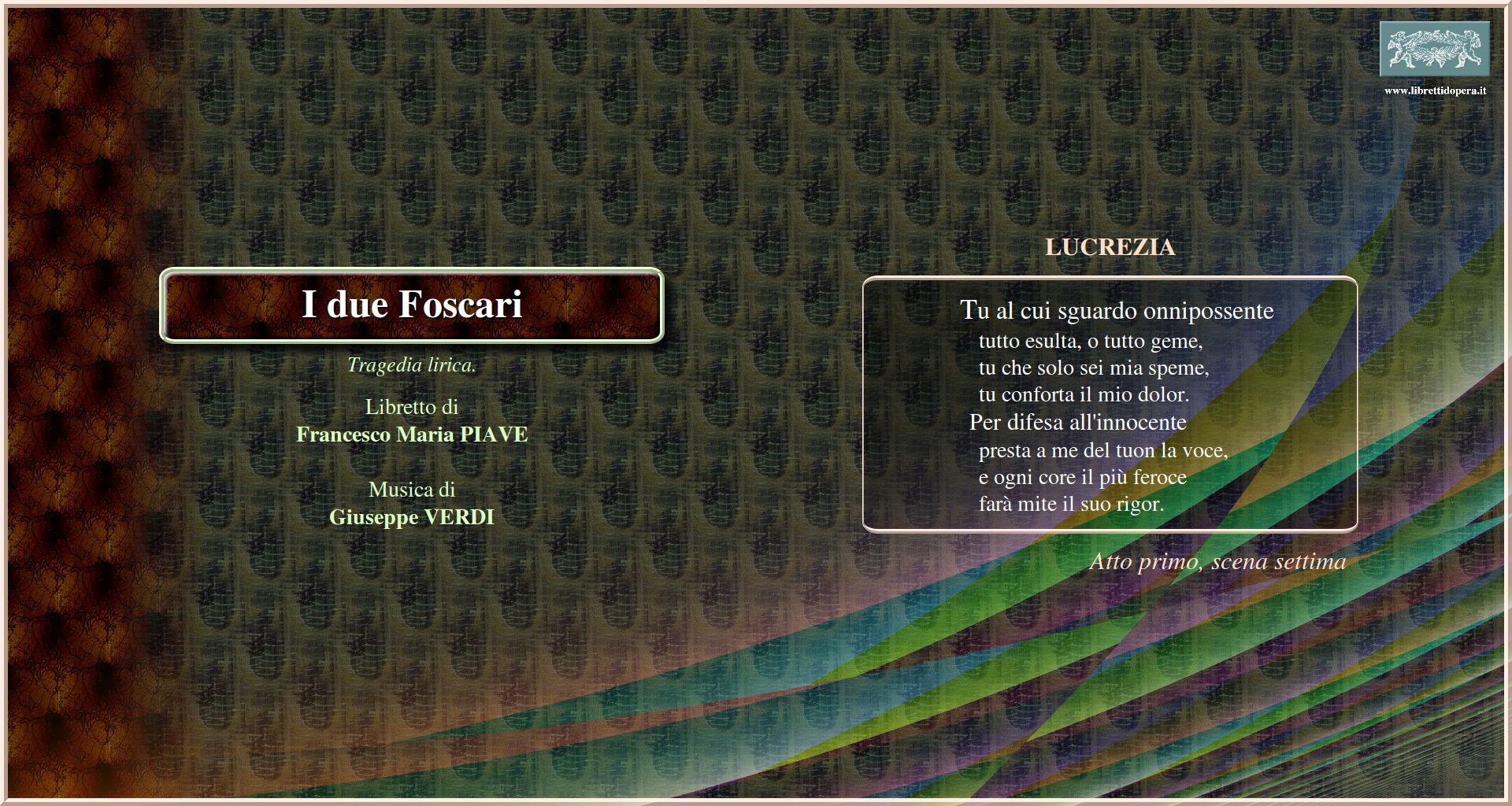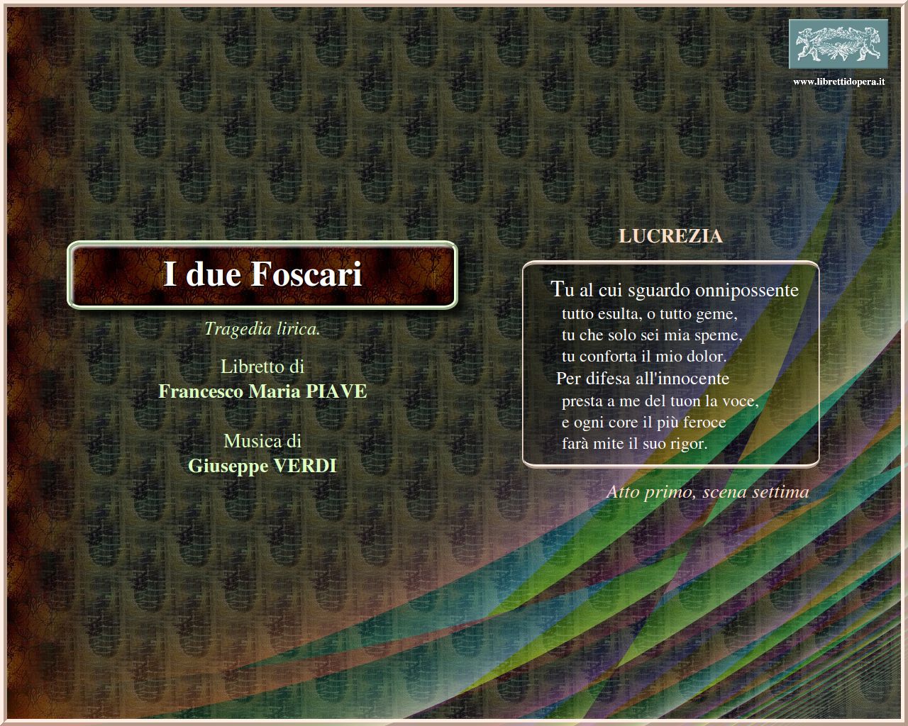 Dal più remoto esilio Odio solo, ed odio atroce Tu al cui sguardo onnipossente La clemenza?... s'aggiunge lo scherno! O vecchio cor, che batti Non maledirmi, o prode Questa è dunque l'iniqua mercede