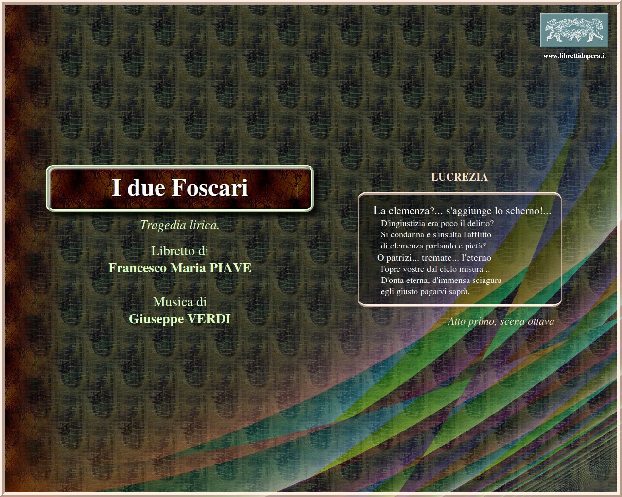 Dal più remoto esilio Odio solo, ed odio atroce Tu al cui sguardo onnipossente La clemenza?... s'aggiunge lo scherno! O vecchio cor, che batti Non maledirmi, o prode Questa è dunque l'iniqua mercede