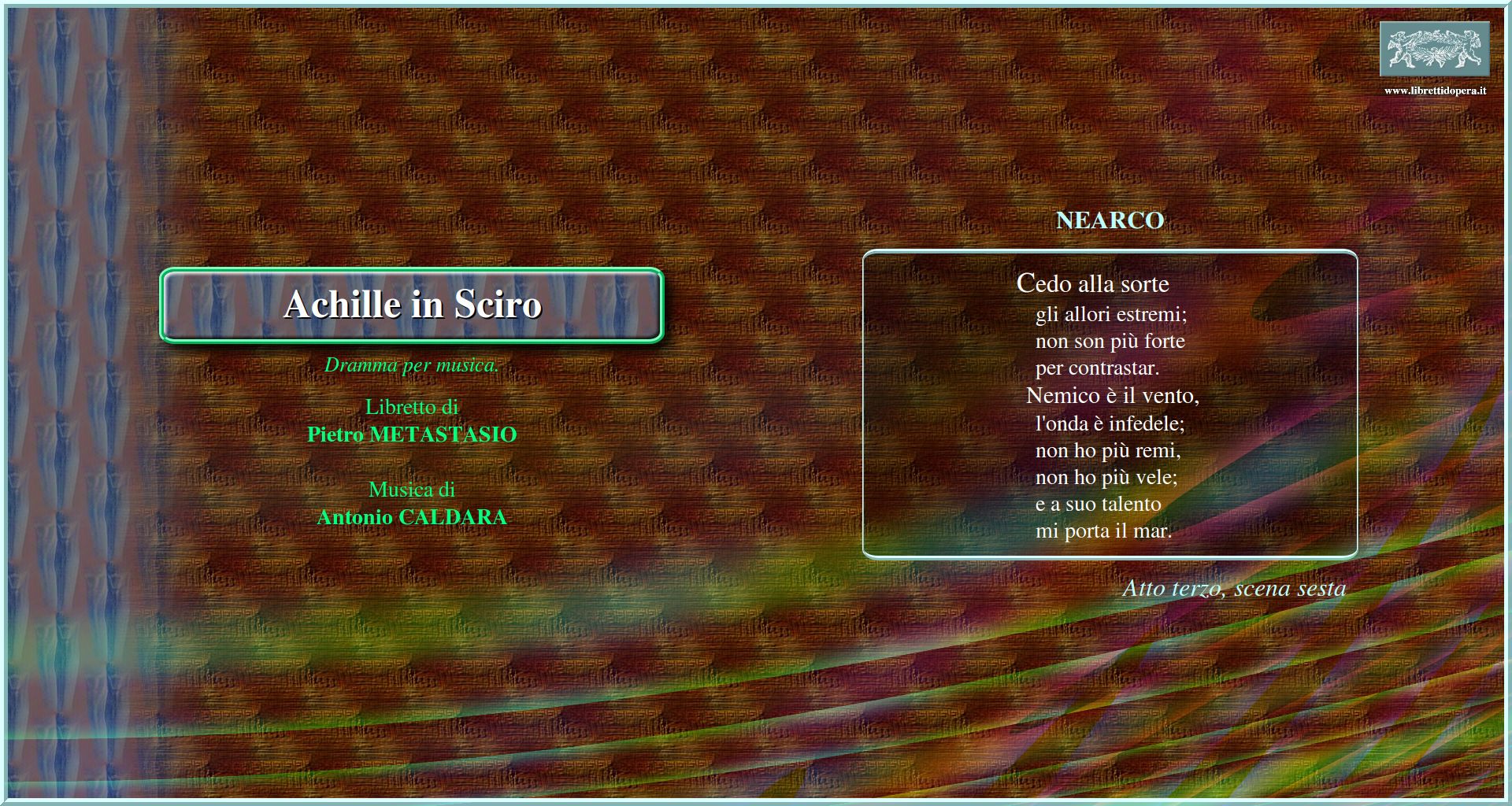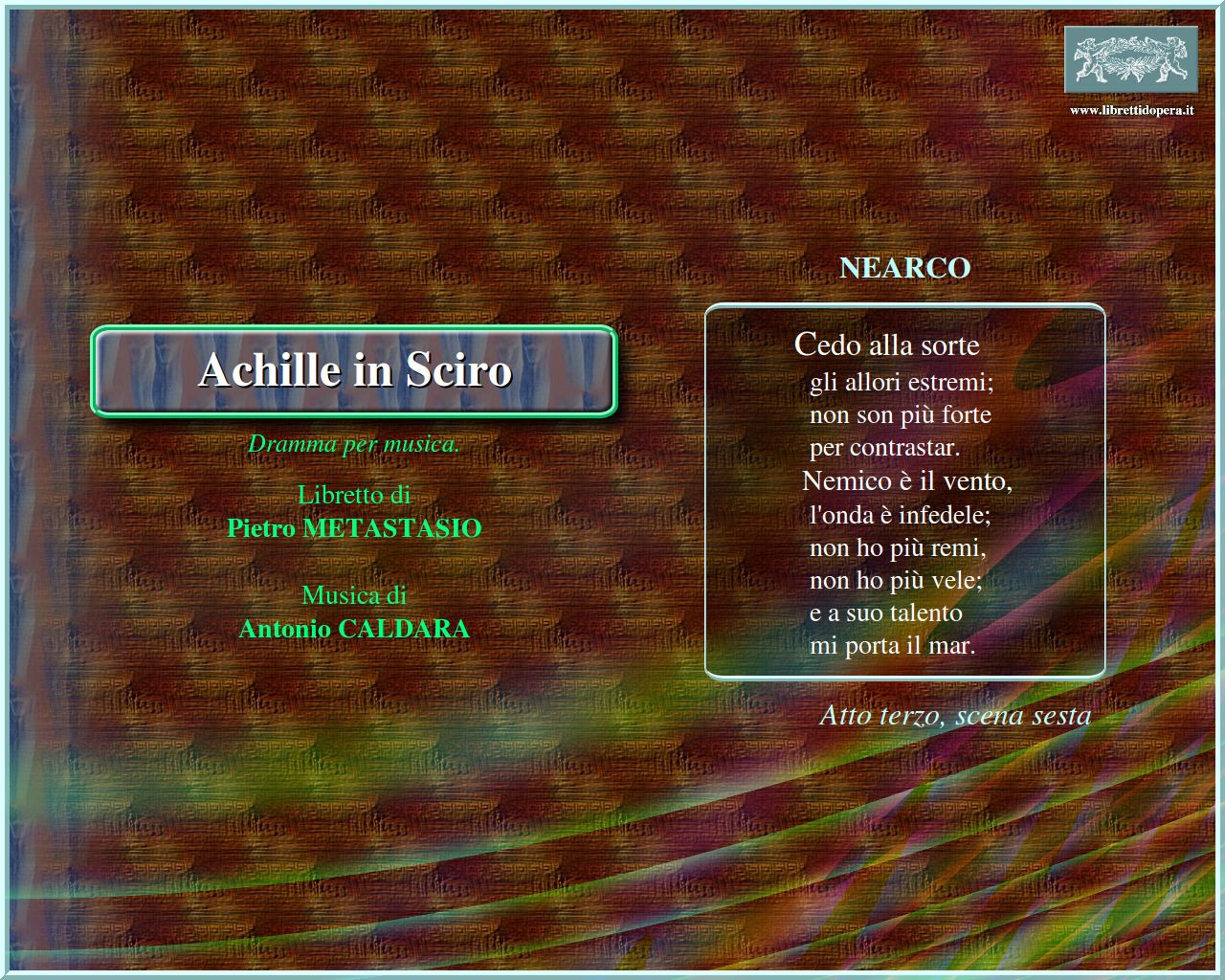 Alme incaute, che torbide ancora Del sen gli ardori Fa' che si spieghi almeno Non vedi, tiranno Cedo alla sorte
