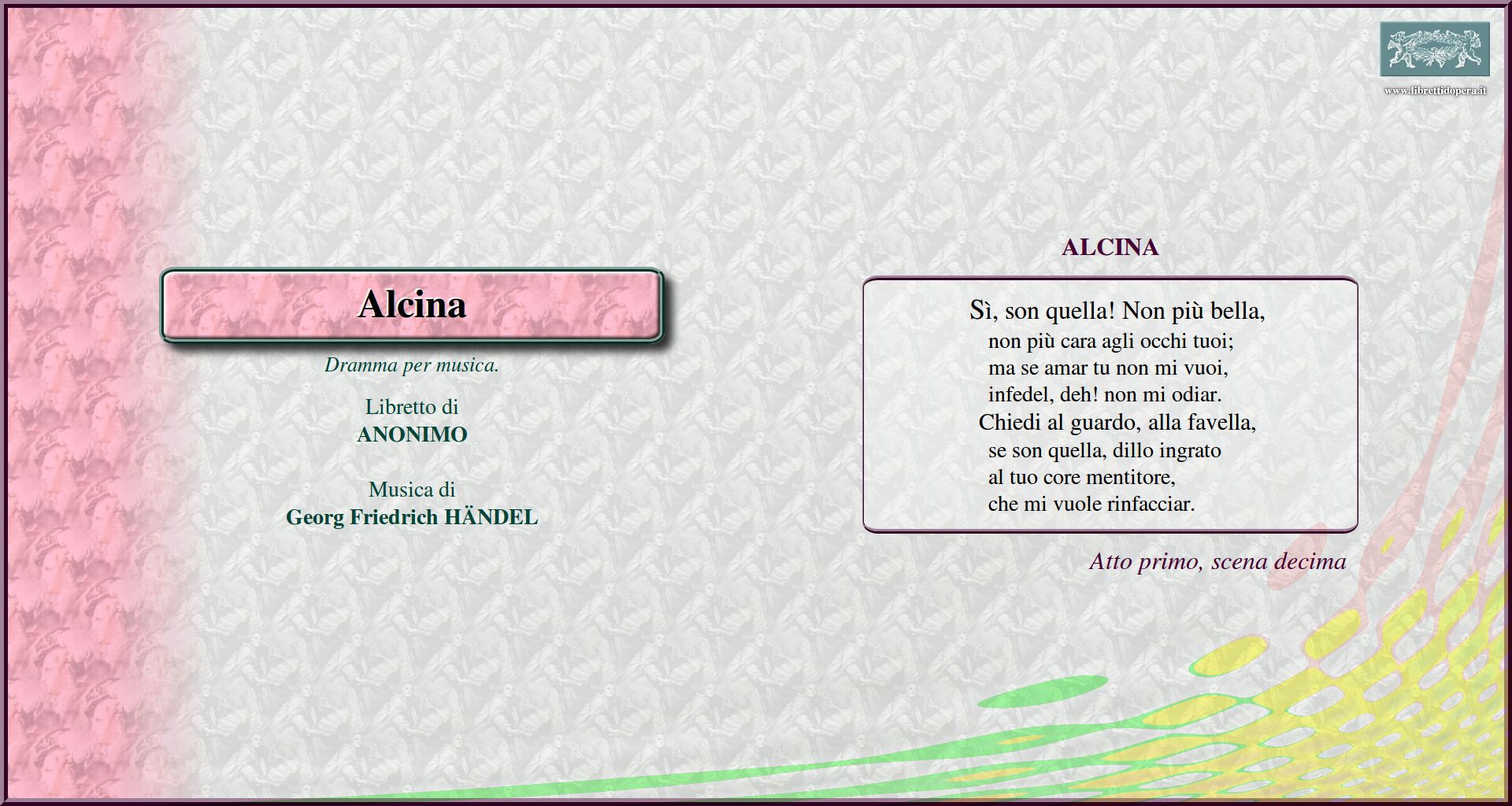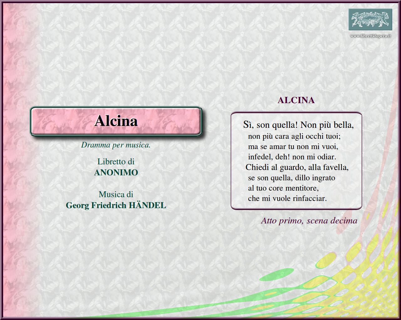 Sì, son quella! Ah! mio cor! Schernito sei! Verdi prati, selve amene Ombre pallide, lo so, mi udite Sta nell'ircana pietrosa tana All'alma fedel