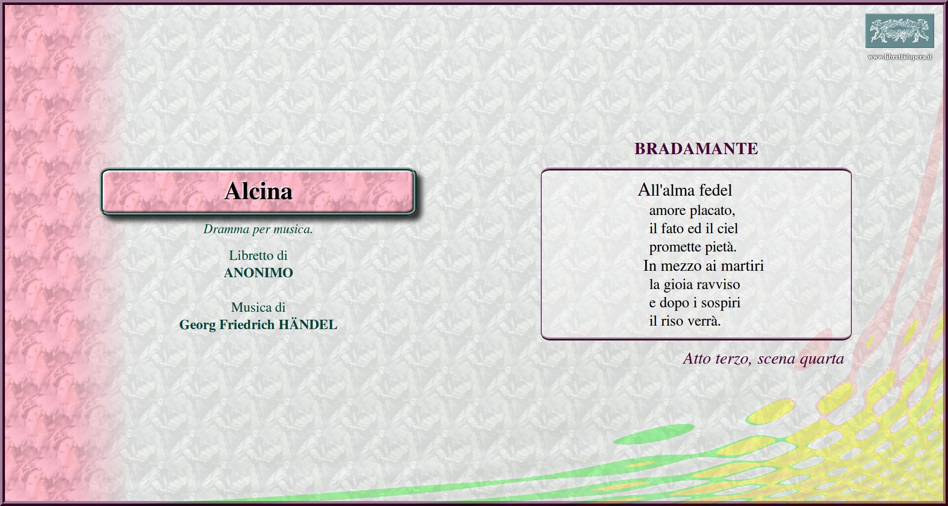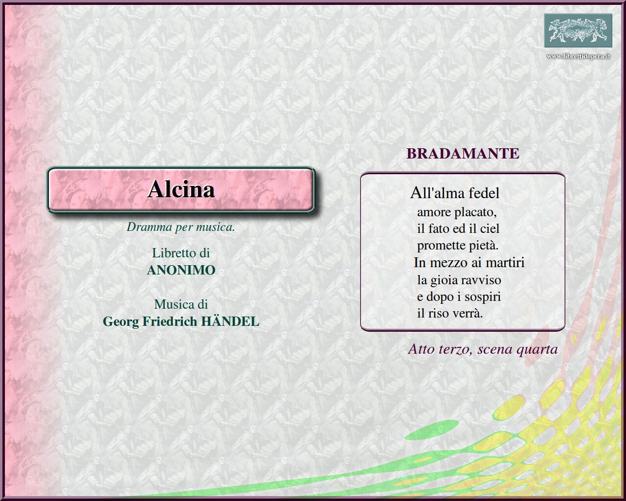 Sì, son quella! Ah! mio cor! Schernito sei! Verdi prati, selve amene Ombre pallide, lo so, mi udite Sta nell'ircana pietrosa tana All'alma fedel