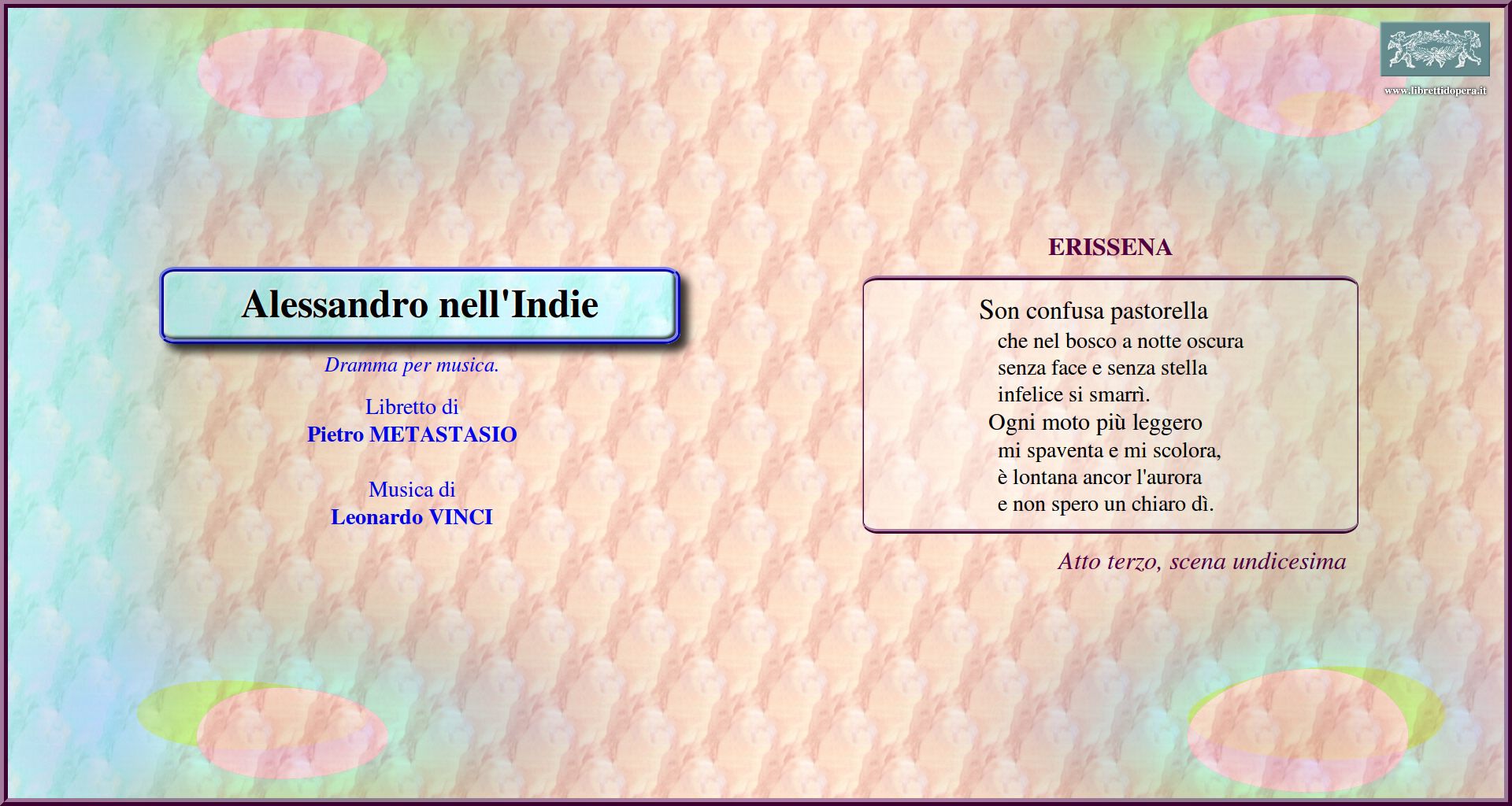 O sugli estivi ardori Non sarei sì sventurata Son confusa pastorella