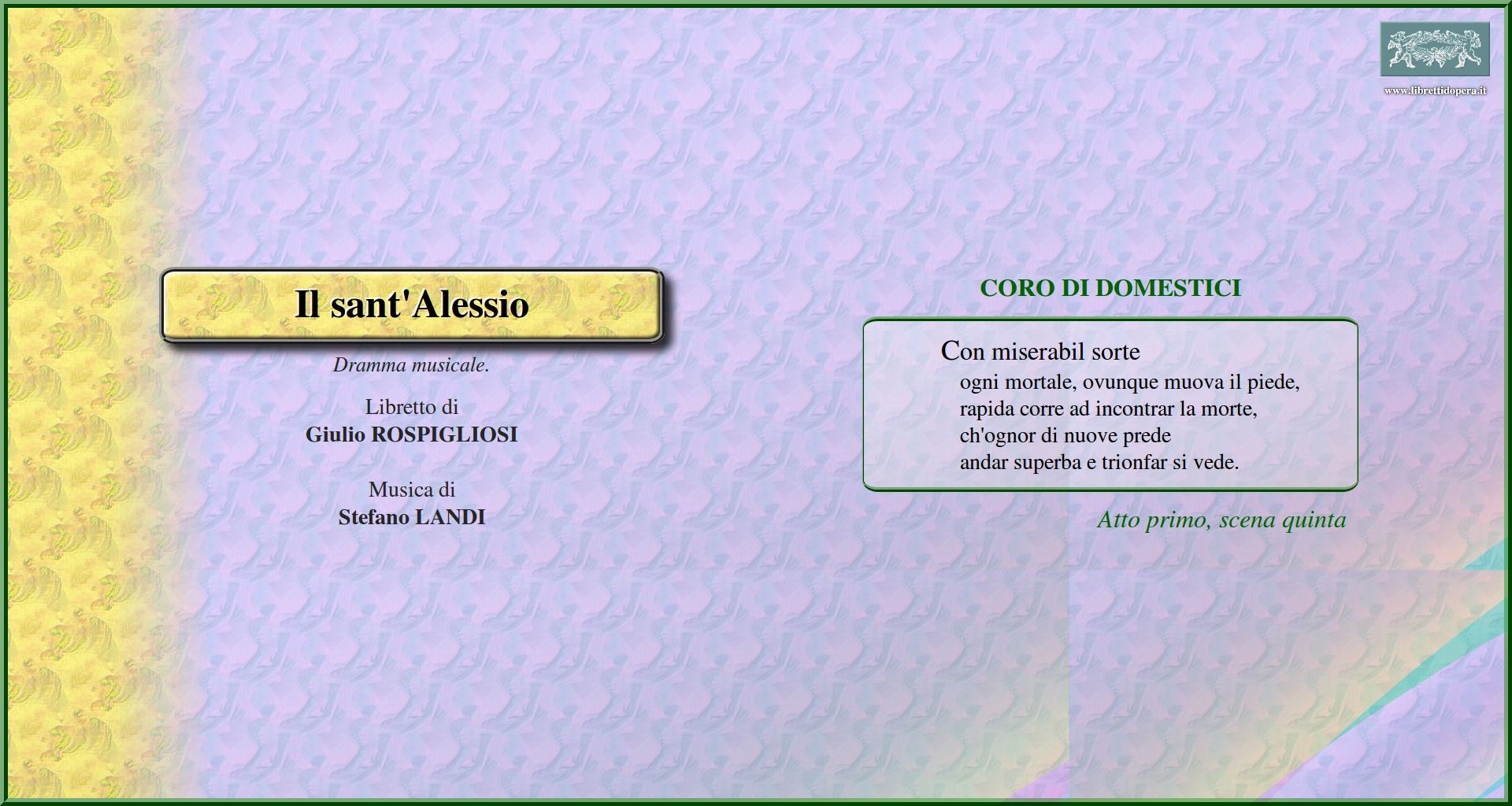 Se l'ore volano Poca voglia di far bene Si disserrino l'atre porte Con miserabil sorte O morte gradita Il ciel vagheggia