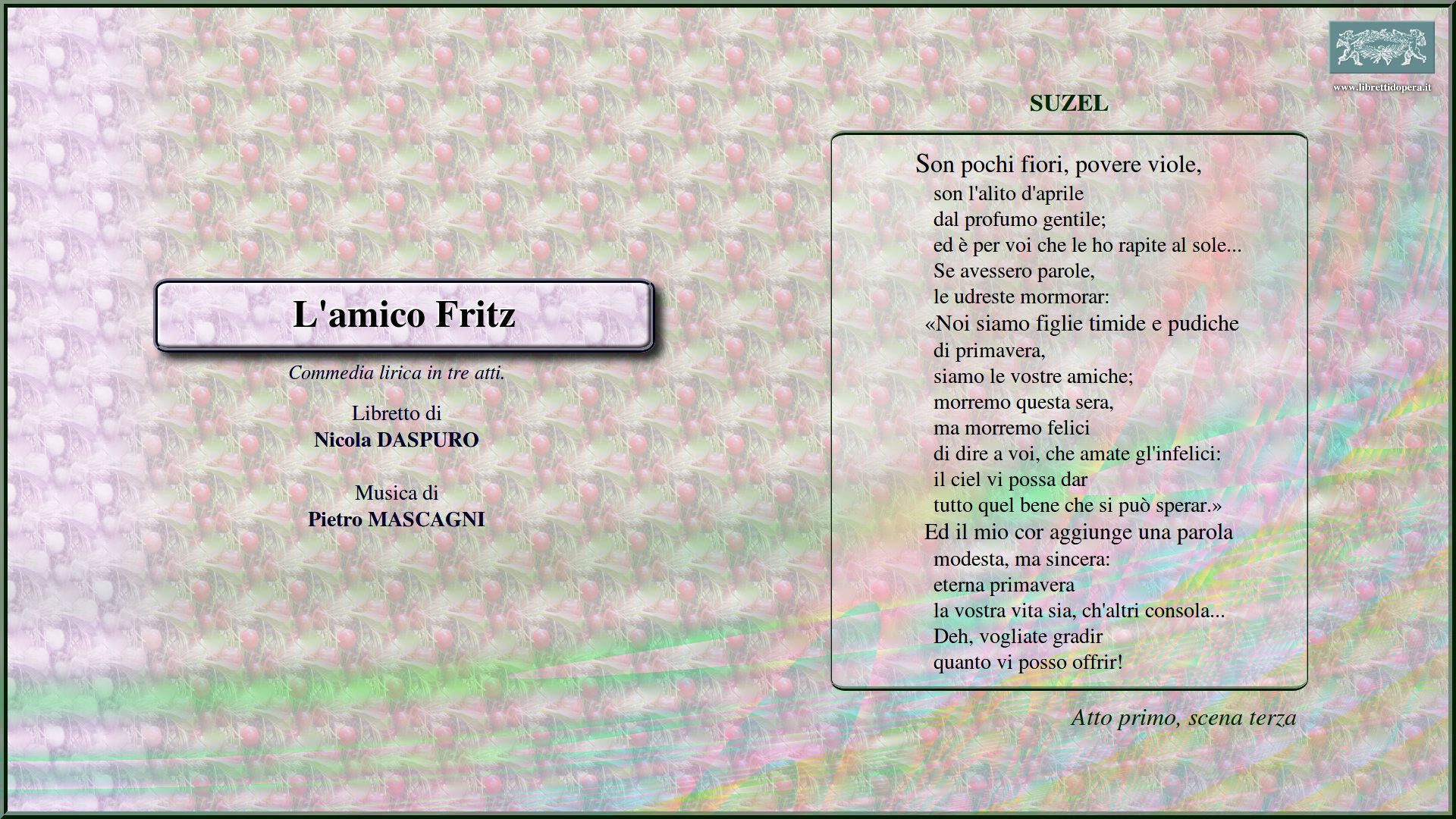 Son pochi fiori, povere viole Tutto tace O amore, o bella luce del core
