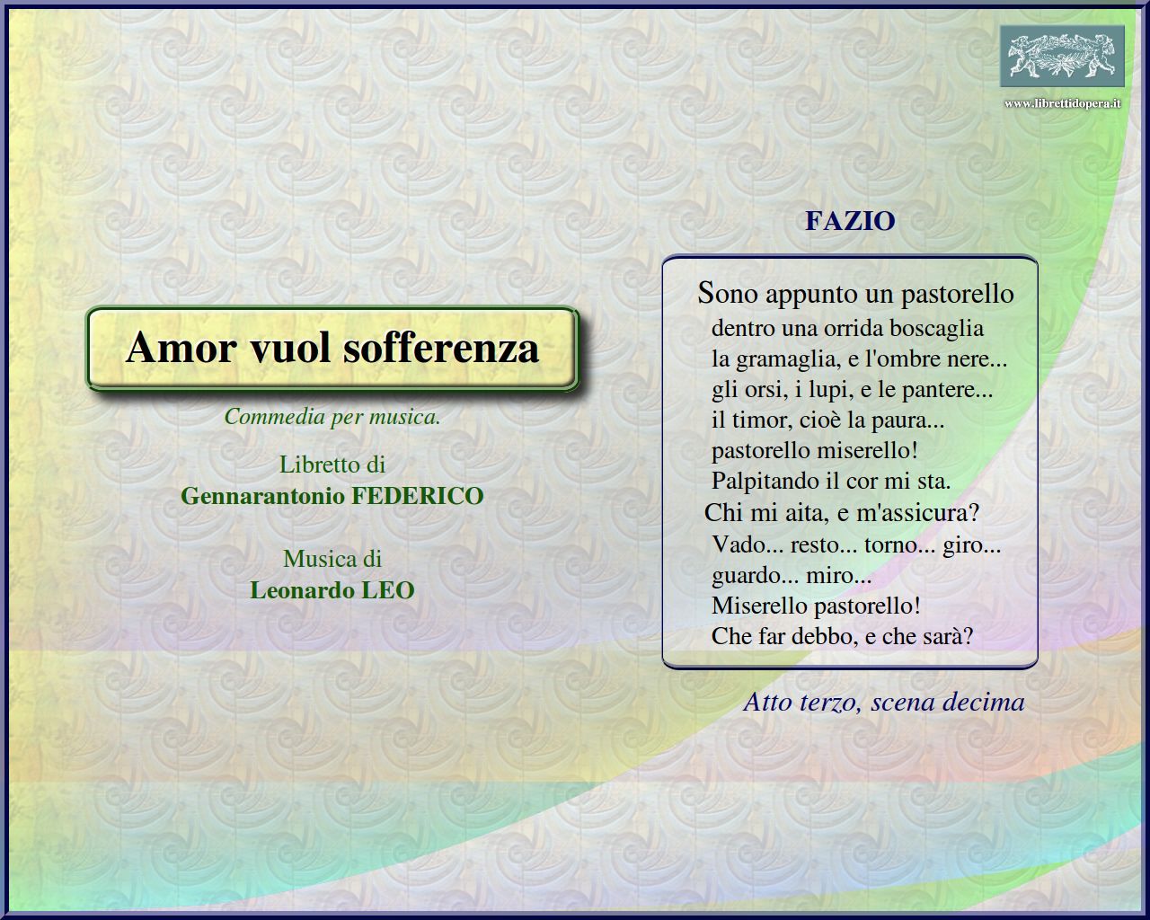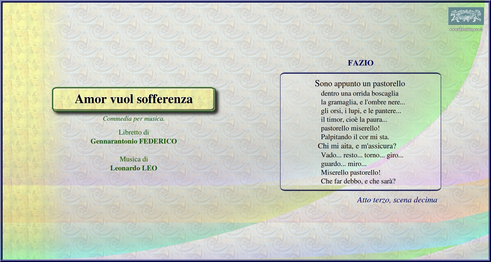 Pagina della partitura I tuoi sdegni, e i tuoi lamenti Io non so dove mi sto Talora in su l'erbetta Quegli occhietti piagnoletti Sono appunto un pastorello