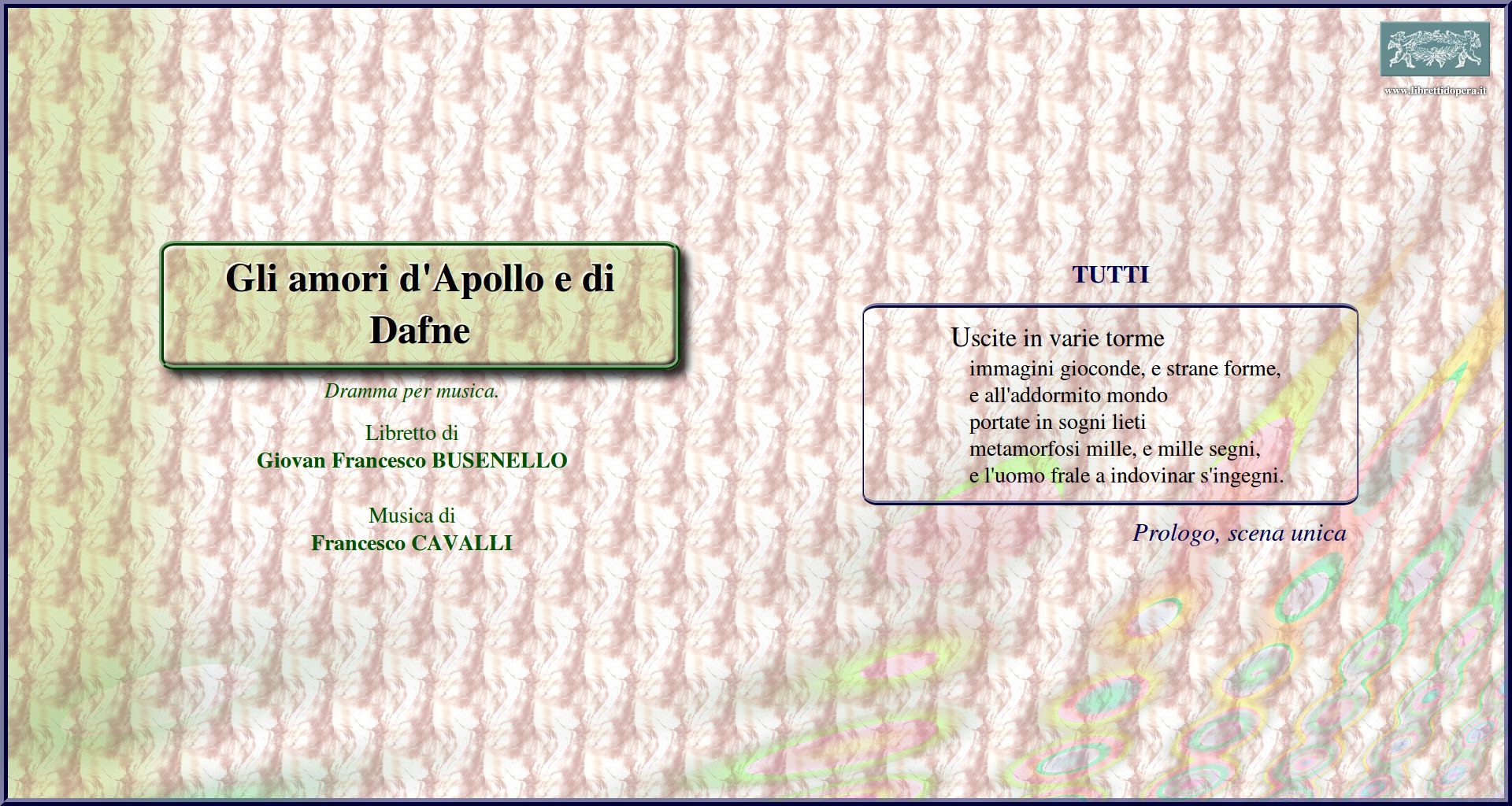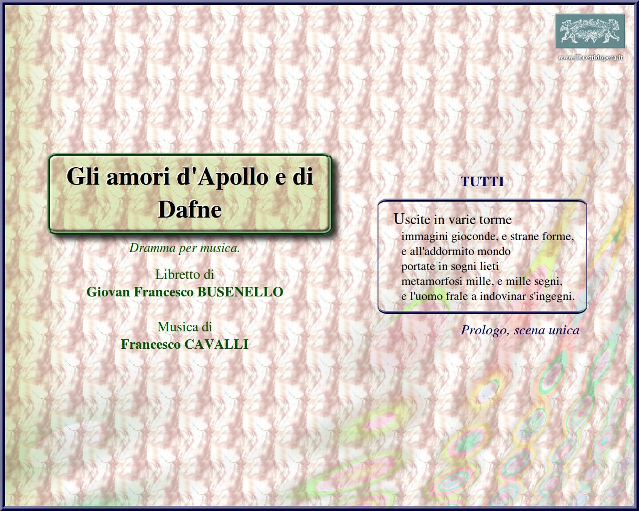 Uscite in varie torme Quel bel fior di giovinezza Lascia Apollo ogni speranza Ohimè, che miro? Ohimè dunque, in alloro