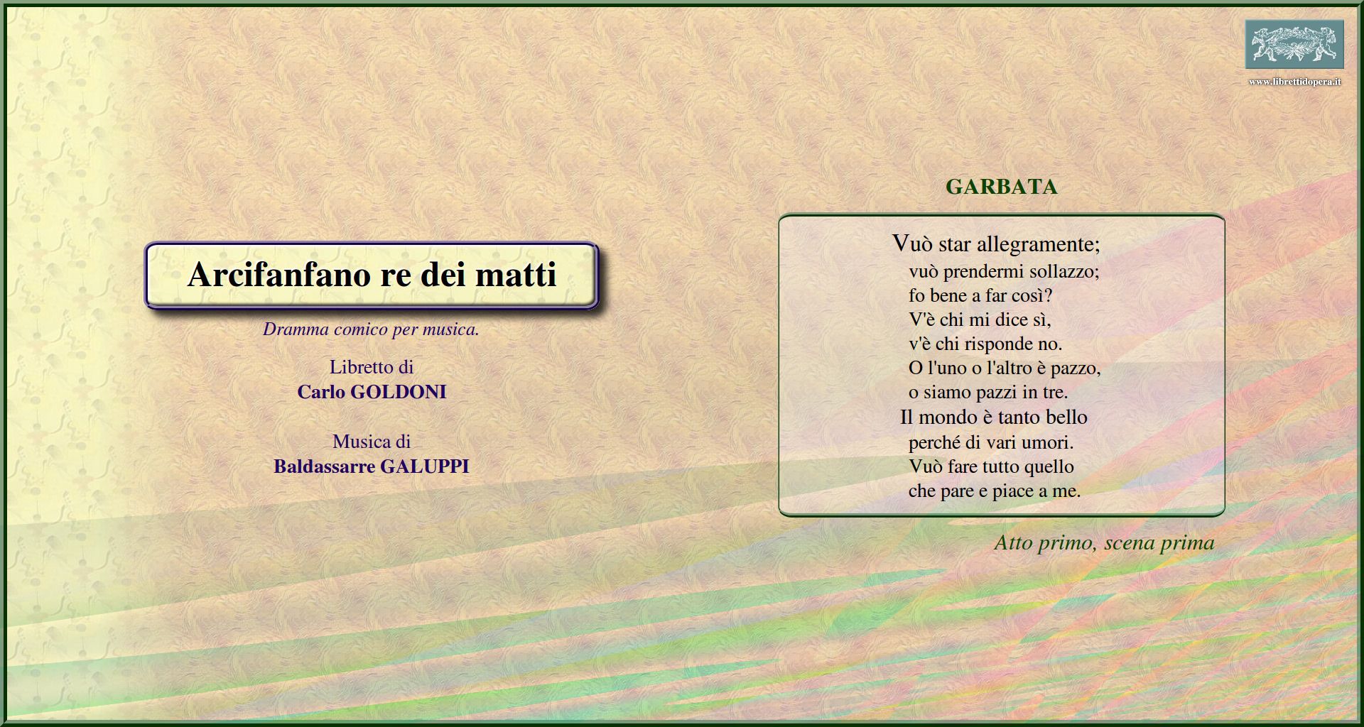 Vuò star allegramente Io che di beltà m'appello il nume Il mio core, poverino Donne belle, che vantate Nel mondo albergano