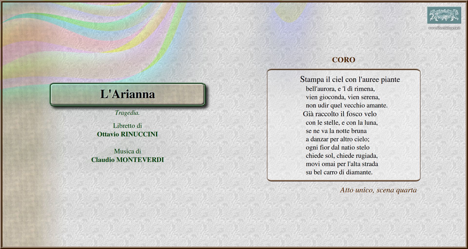 vai a posizione nel testo del libretto