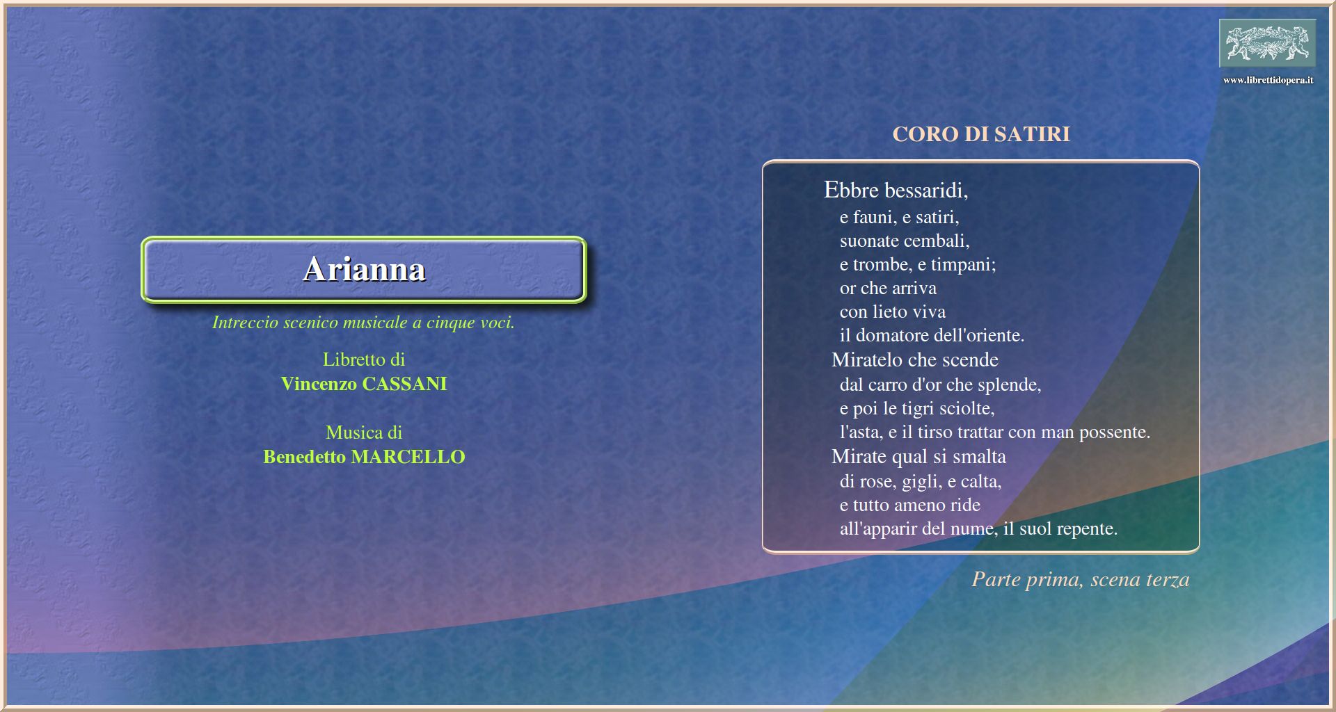 Se appagar volesse il cielo Ebbre Bessaridi Re de’ venti Nave che solca Latte, e mèle ecco vegg’io Che dolce foco in petto