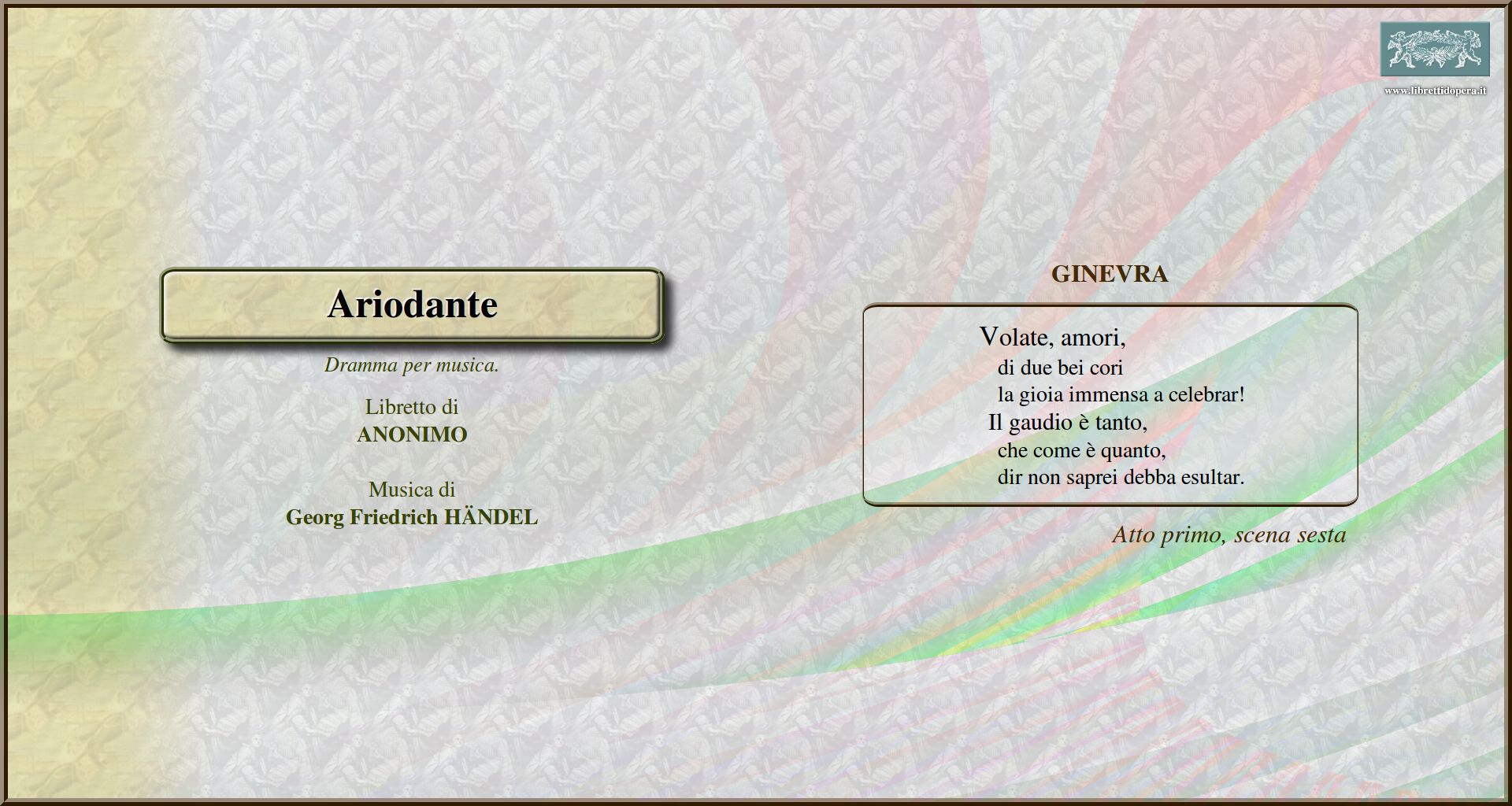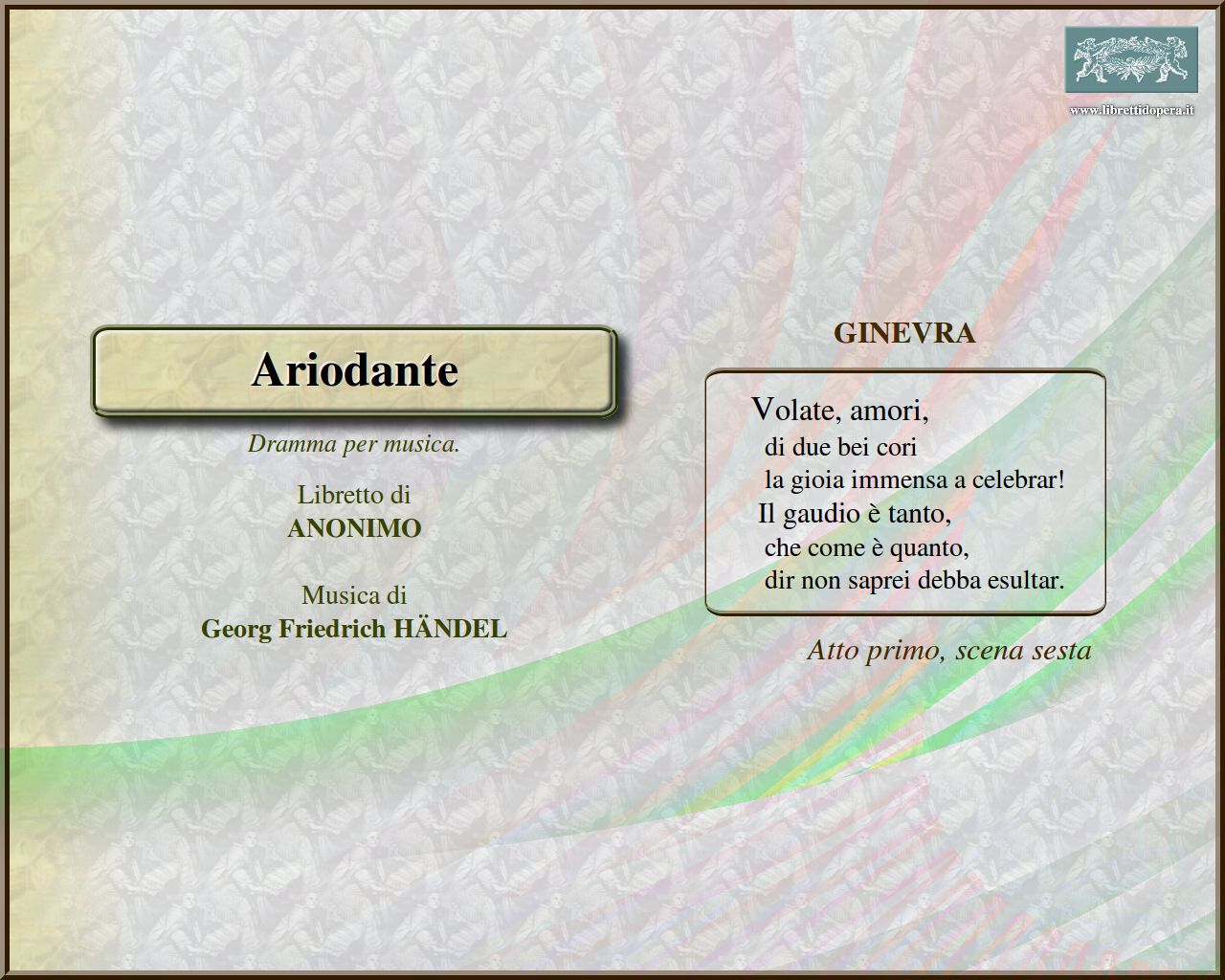 Volate, amori Voli co' la sua tromba Con l'ali di costanza Scherza infida in grembo al drudo Il mio crudel martoro Cieca notte, infidi sguardi
