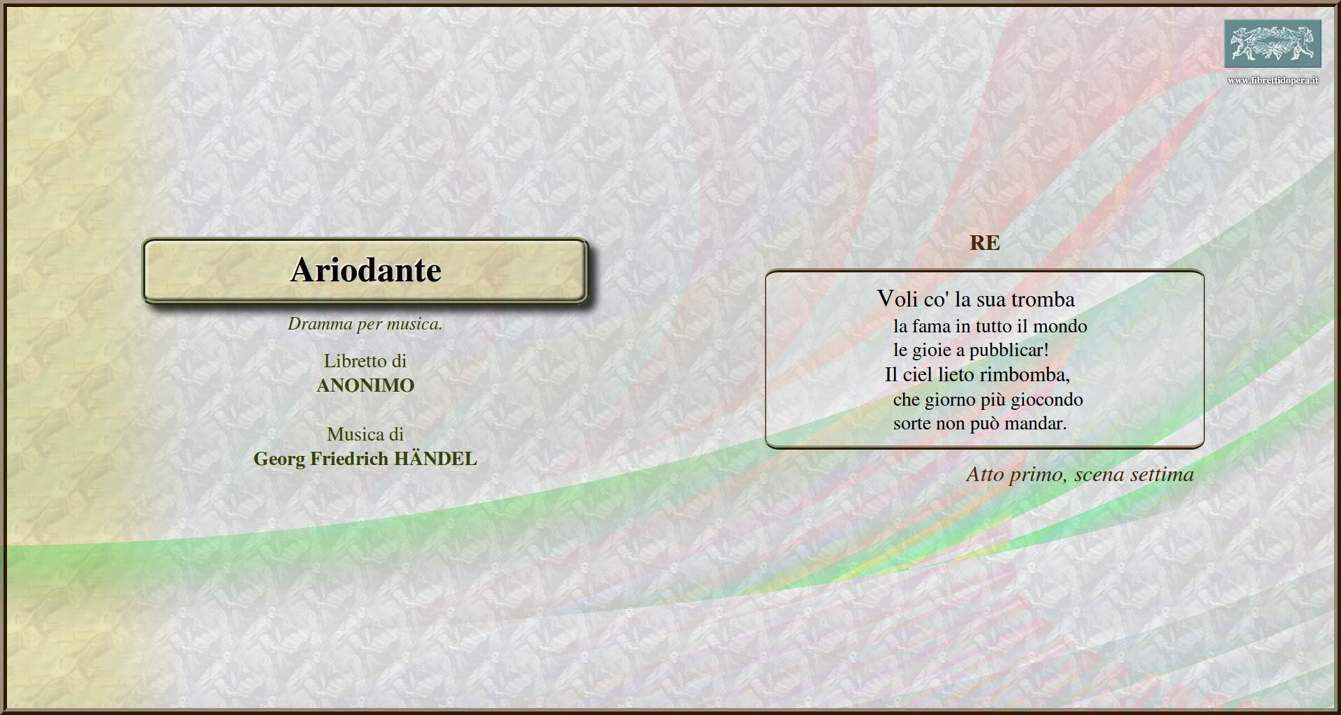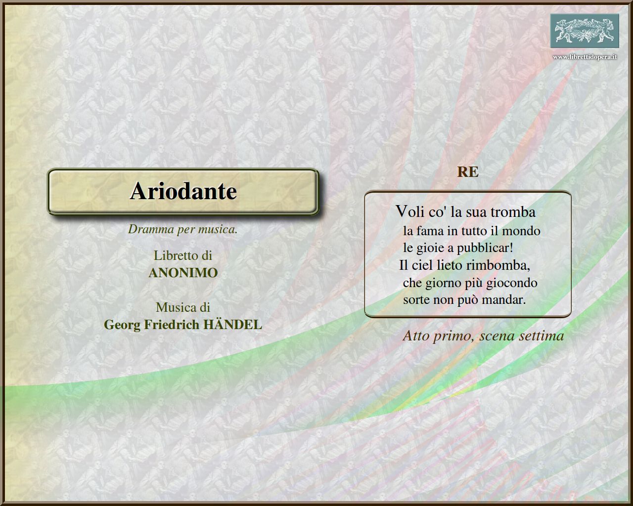 Volate, amori Voli co' la sua tromba Con l'ali di costanza Scherza infida in grembo al drudo Il mio crudel martoro Cieca notte, infidi sguardi