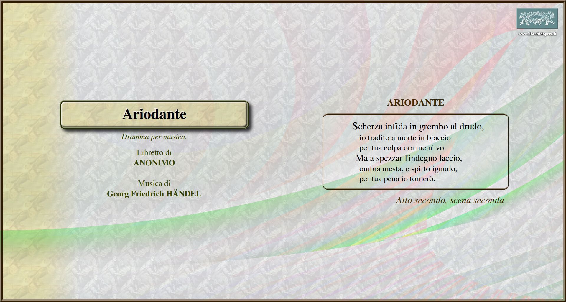 Volate, amori Voli co' la sua tromba Con l'ali di costanza Scherza infida in grembo al drudo Il mio crudel martoro Cieca notte, infidi sguardi