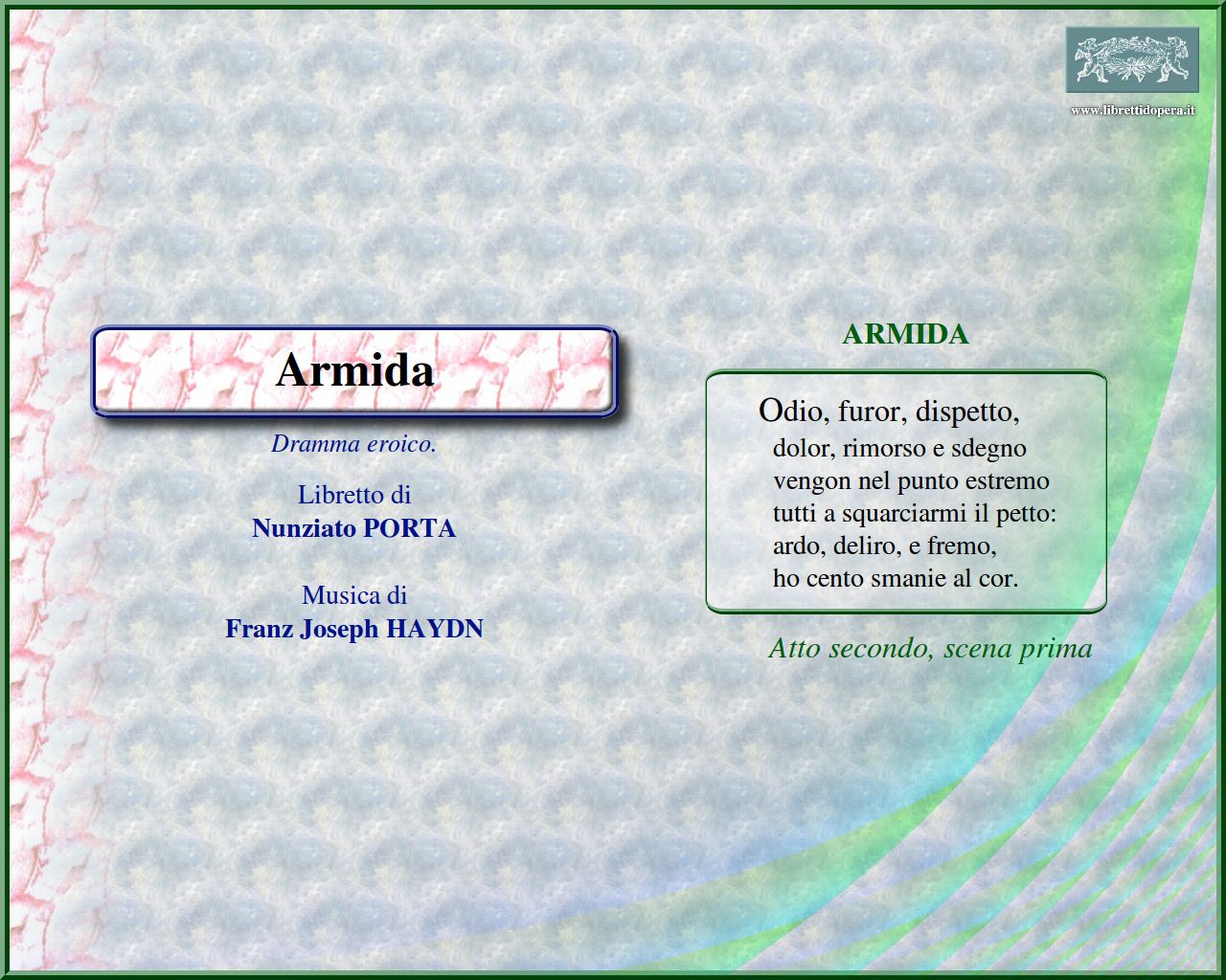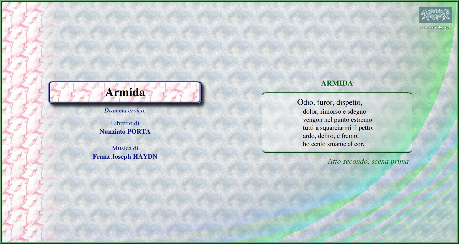 Cara, sarò fedele Odio, furor, dispetto Cara, è vero, io son tiranno Dèi pietosi, in tal cimento Ah, non ferir: t'arresta