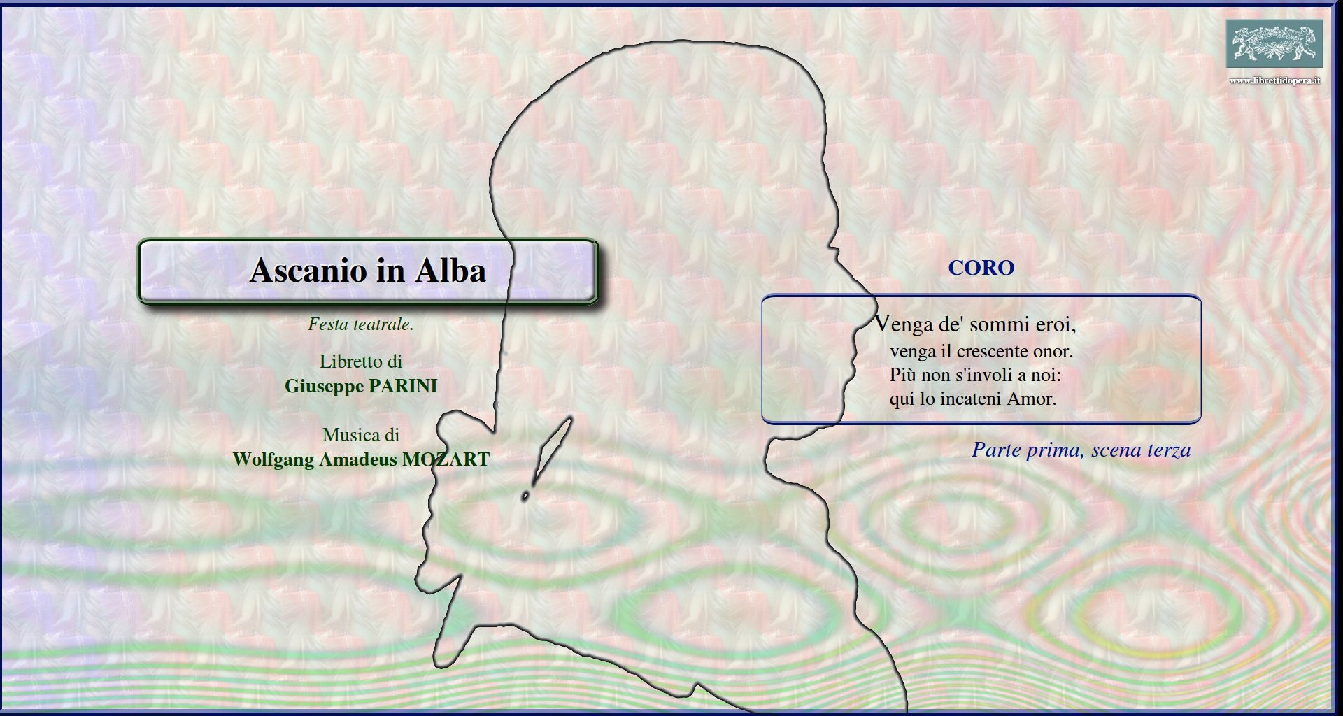 Venga de' sommi eroi Ah di sì nobil alma Infelici affetti miei Scendi, celeste Venere