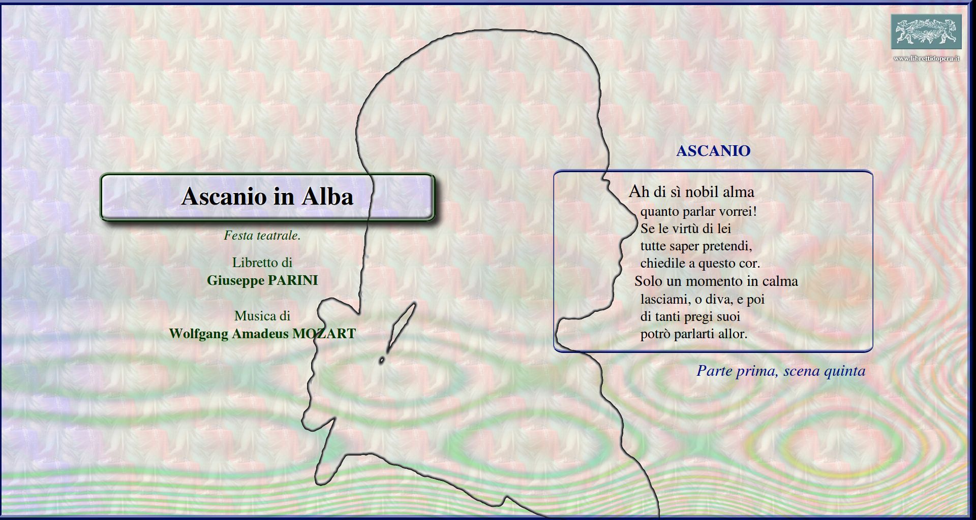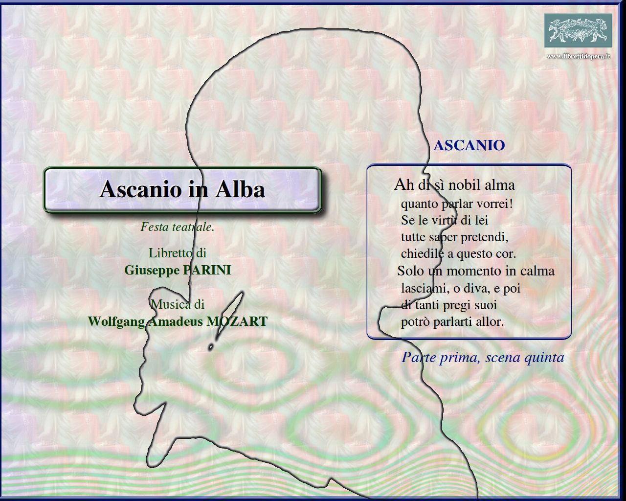 Venga de' sommi eroi Ah di sì nobil alma Infelici affetti miei Scendi, celeste Venere