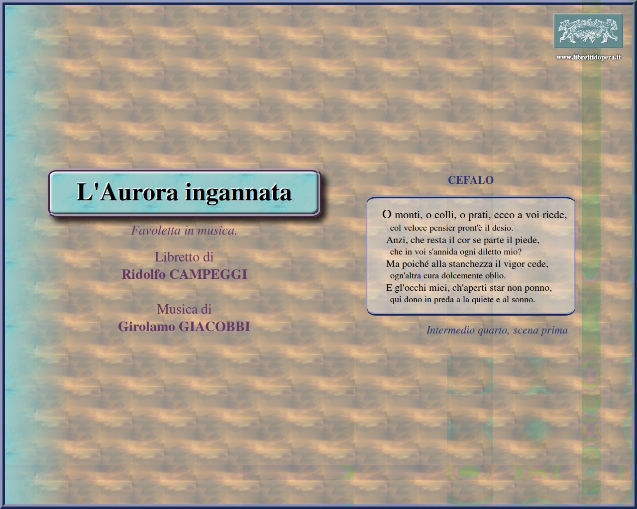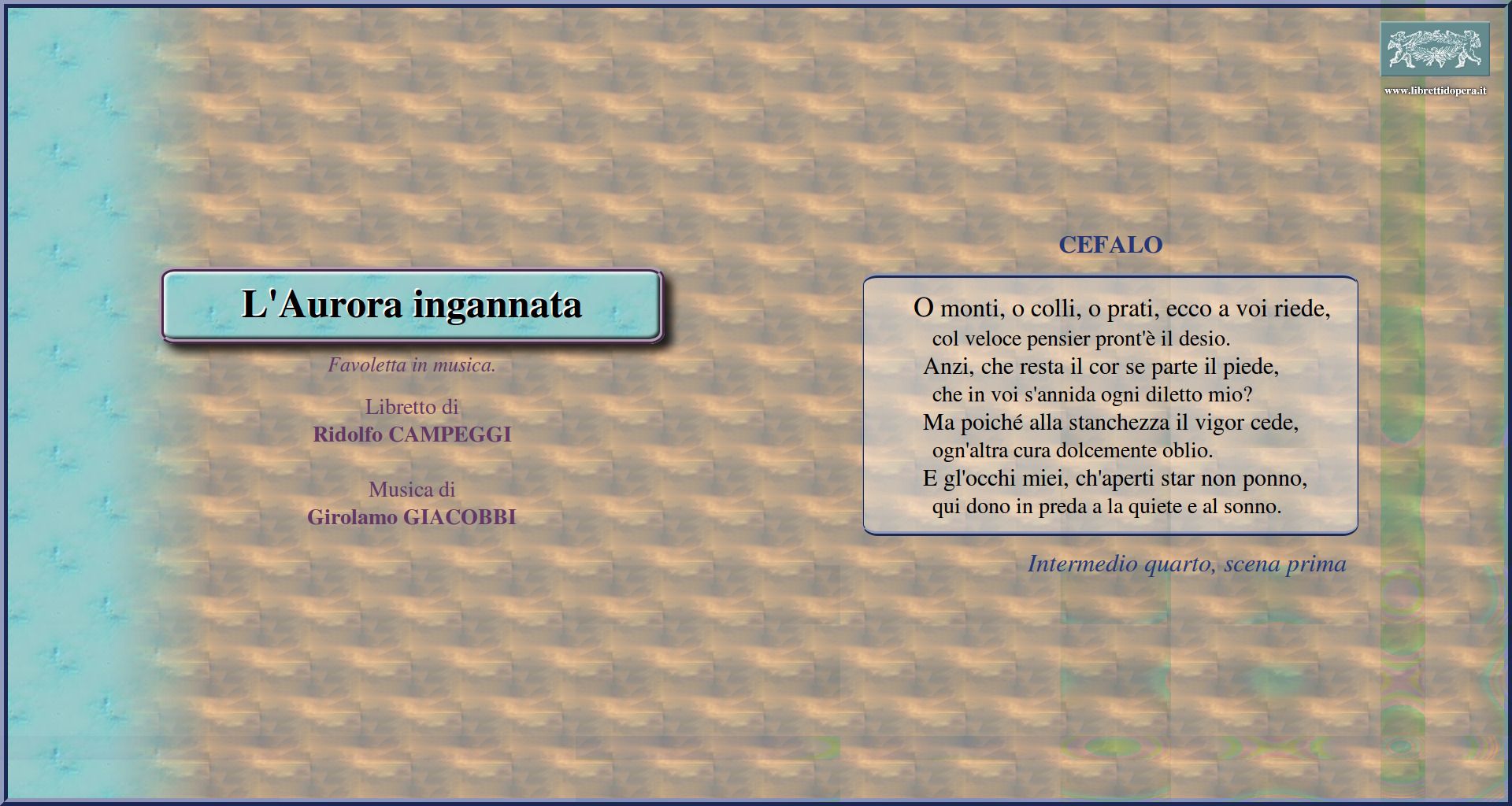 Amor nume leggiadro Aura dolce e diletta O monti, o colli, o prati, ecco a voi riede