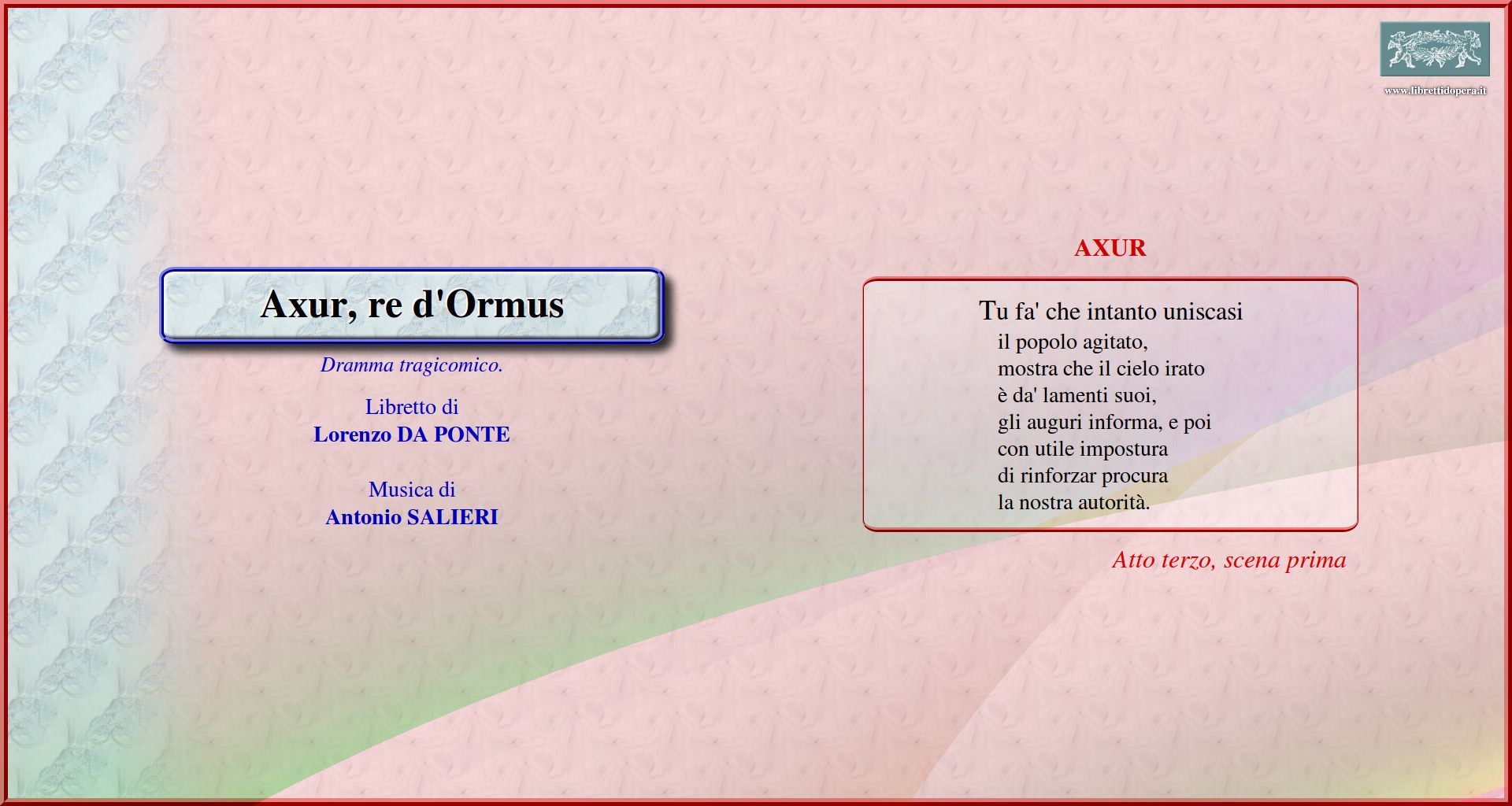Atto primo Atto secondo Atto terzo Atto quarto Atto quinto