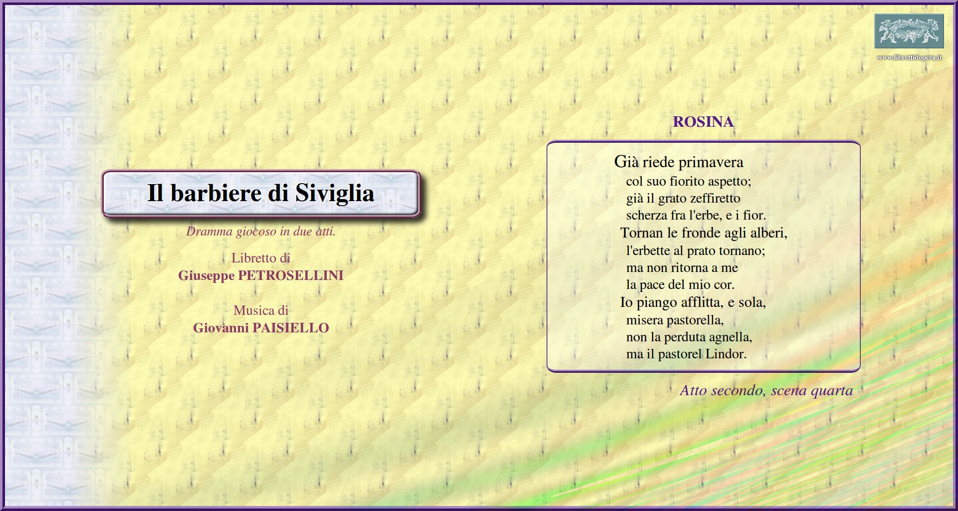 Quel che va male in versi Saper bramate La calunnia, mio signore Oh che umor! ohimè, che umore! Già riede primavera