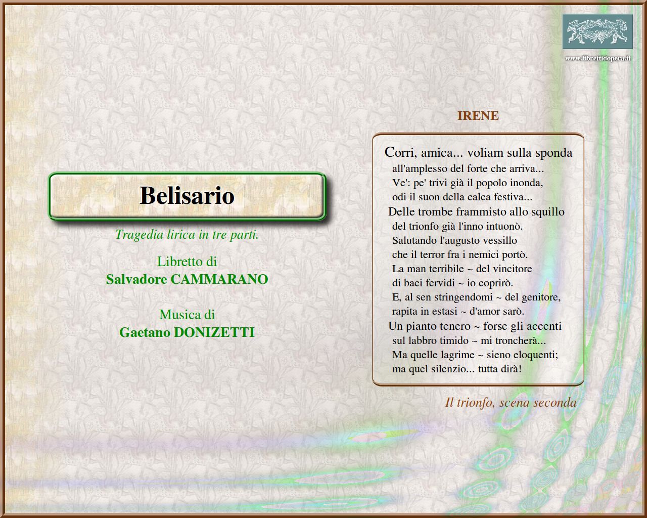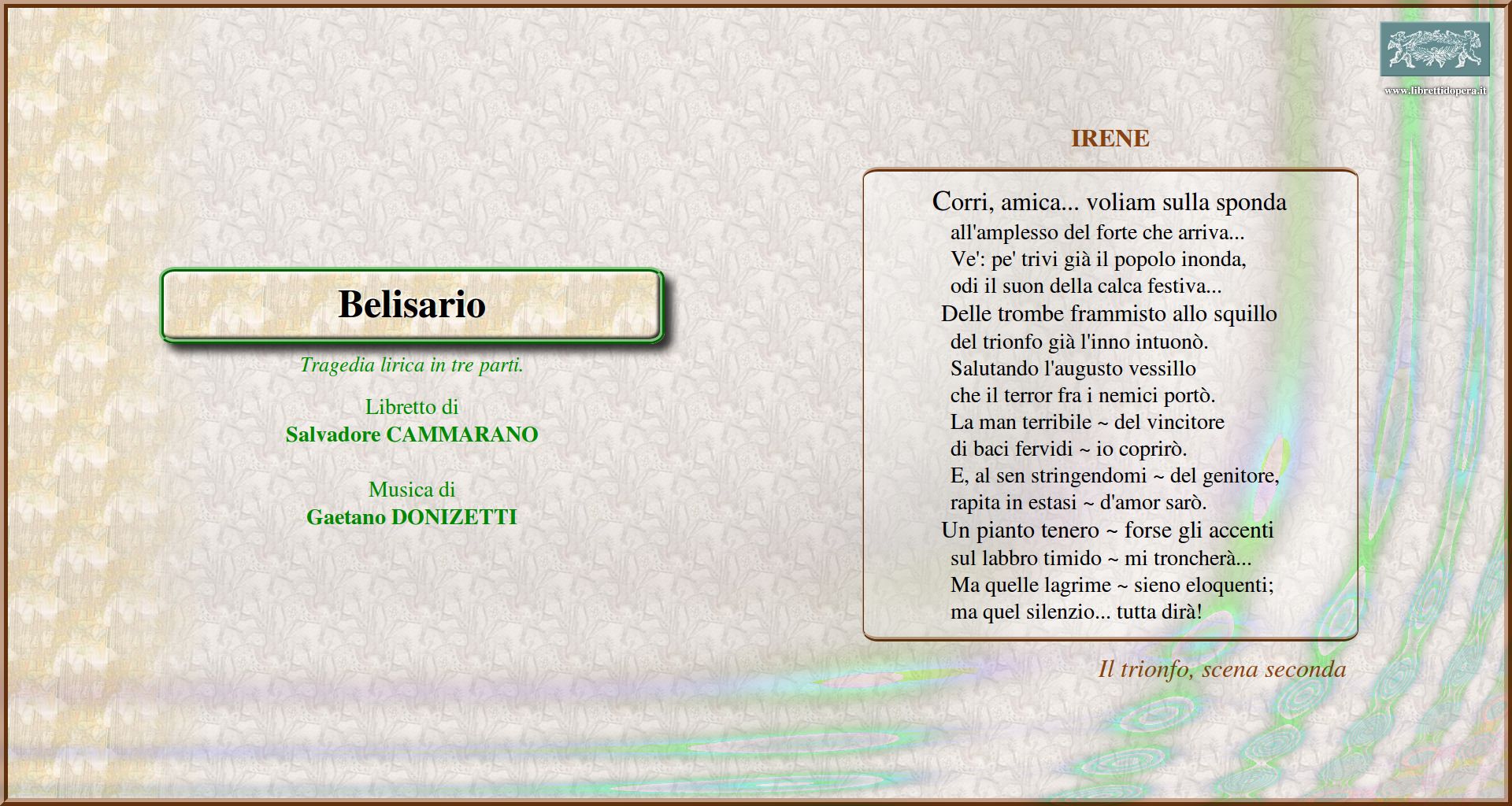 Corri, amica… voliam sulla sponda Ah se potessi piangere Da quel dì che l'innocente