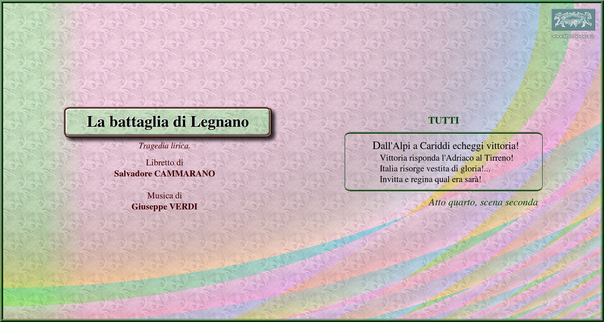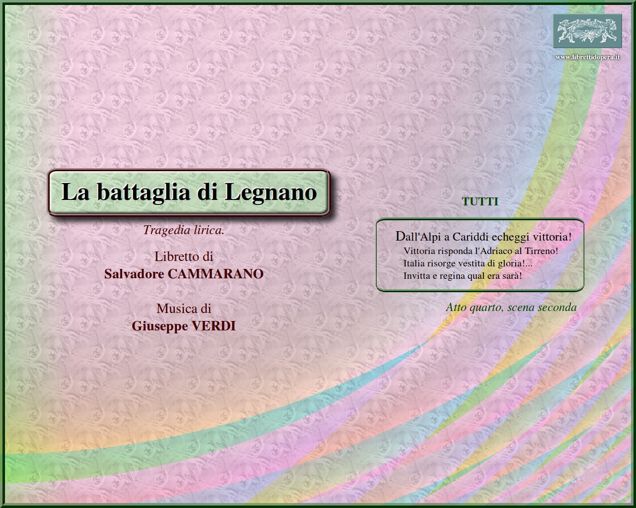 Viva Italia! un sacro patto Digli ch'è sangue italico Dall'Alpi a Cariddi echeggi vittoria!