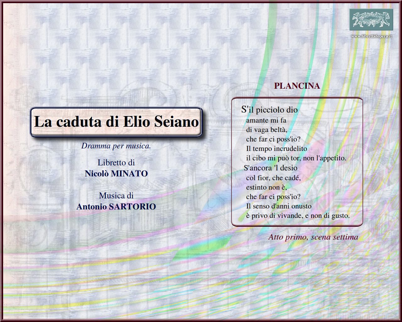 La fiamma d'amore S'il picciolo dio È una luce di baleno Chi stimò d'atomi lievi Fantasmi noiosi A te ricorro, a te Se i pianti non giovano Socchiusi pugnino