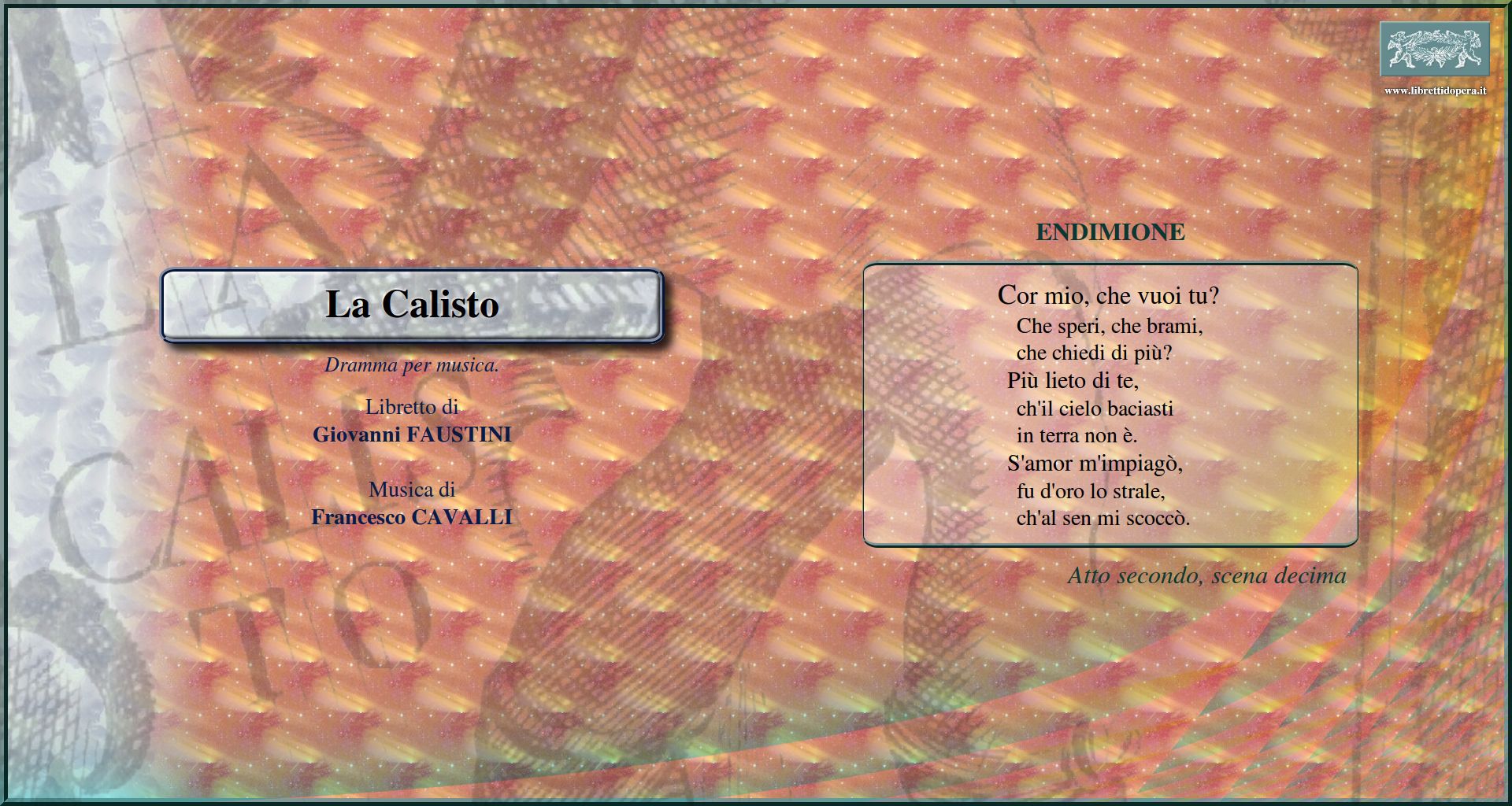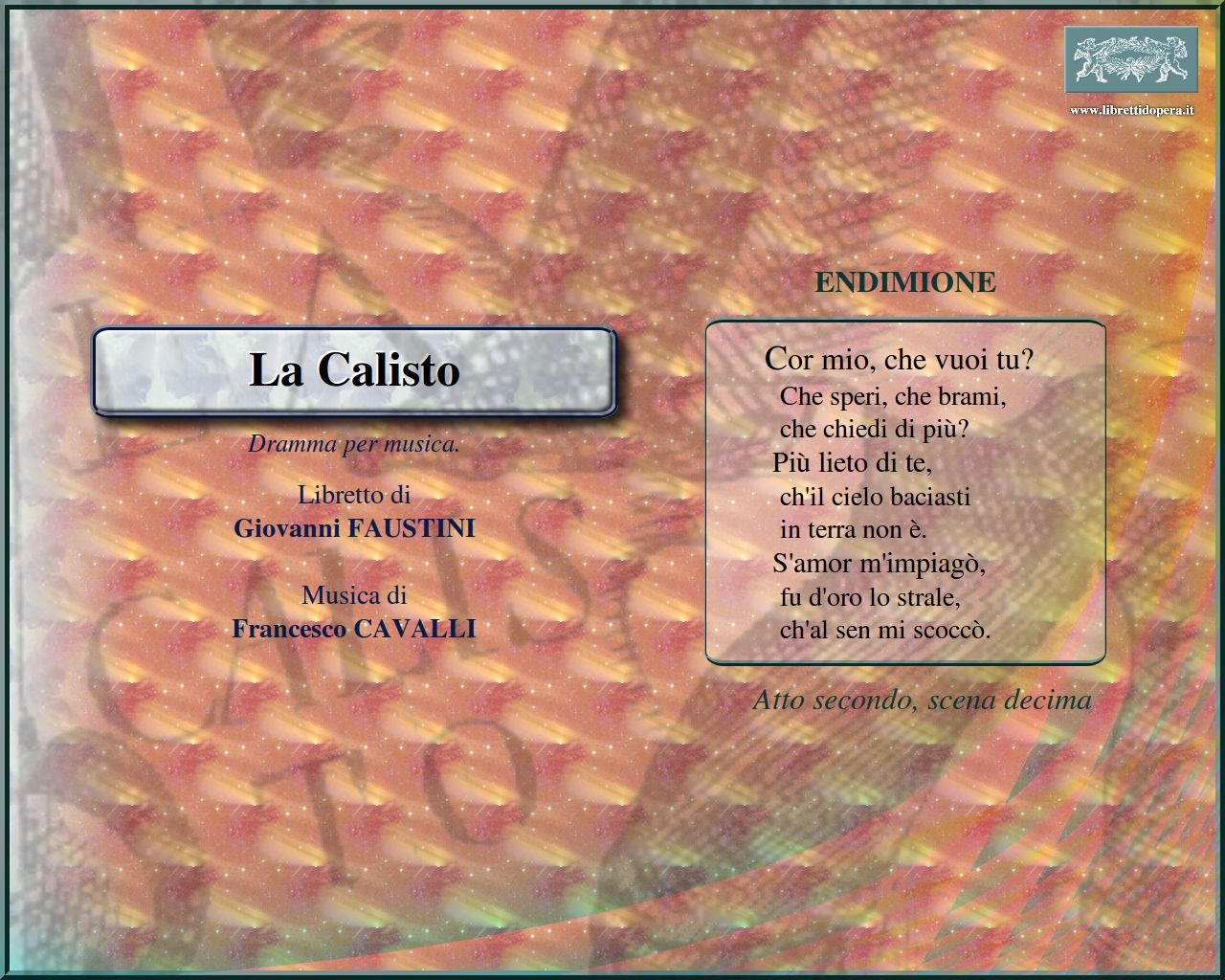 Chi qua sale Non è maggior piacere Cor mio, che vuoi tu? Dolcissimi baci