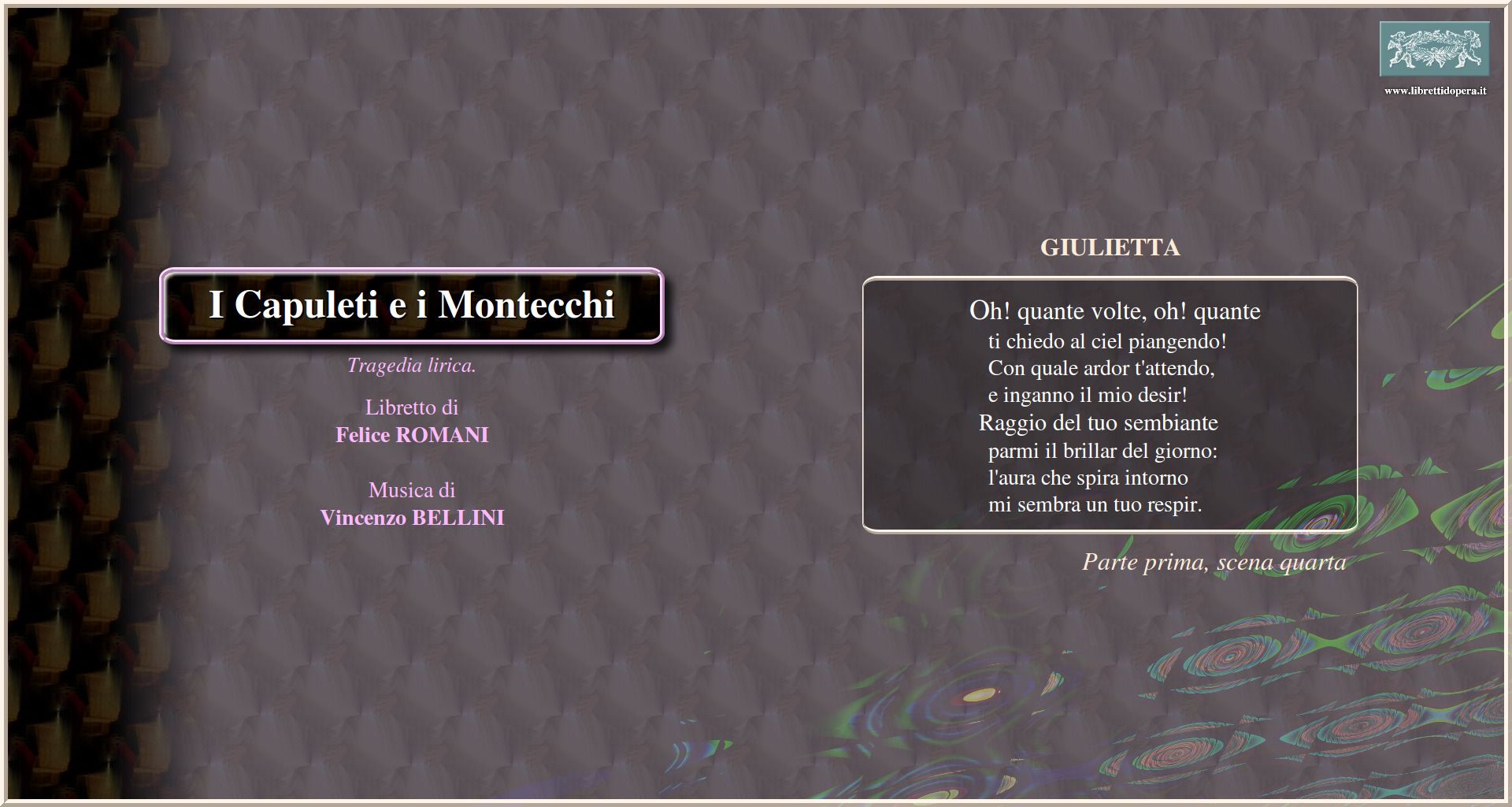 È serbata a questo acciaro La tremenda ultrice spada Oh! quante volte, oh! quante Deh! tu, bell'anima