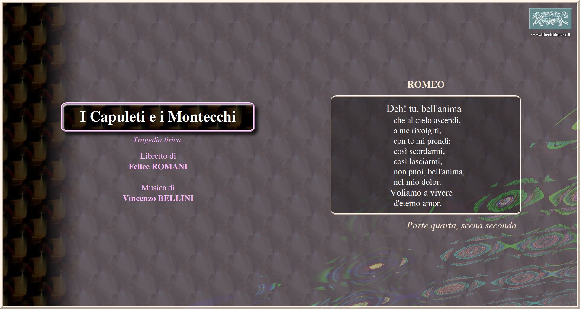 È serbata a questo acciaro La tremenda ultrice spada Oh! quante volte, oh! quante Deh! tu, bell'anima