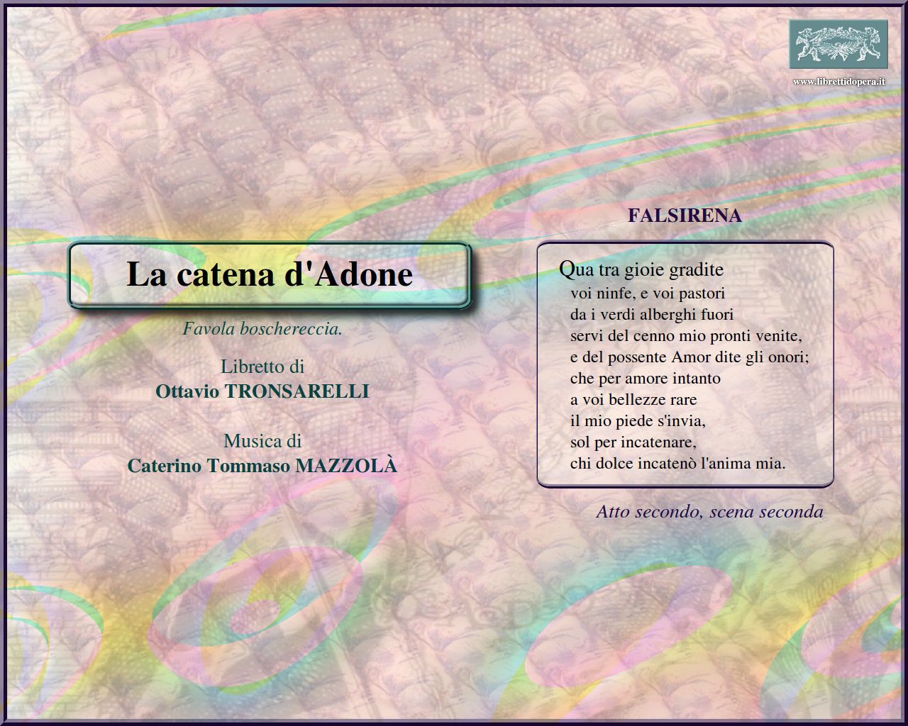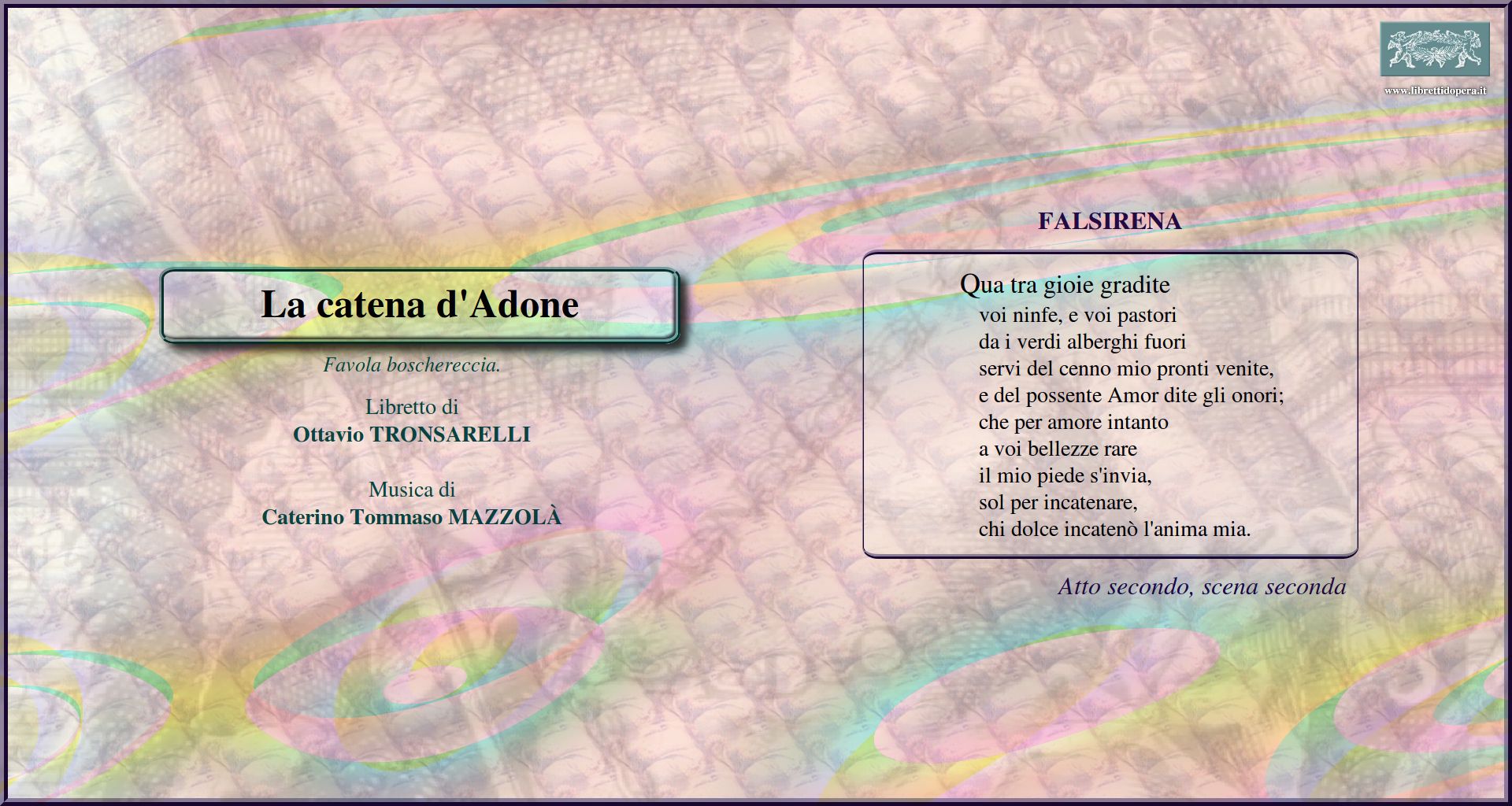 Del giardino il diletto Mira, mira gioioso Qua tra gioie gradite De la maga il grande accento Florido nembo