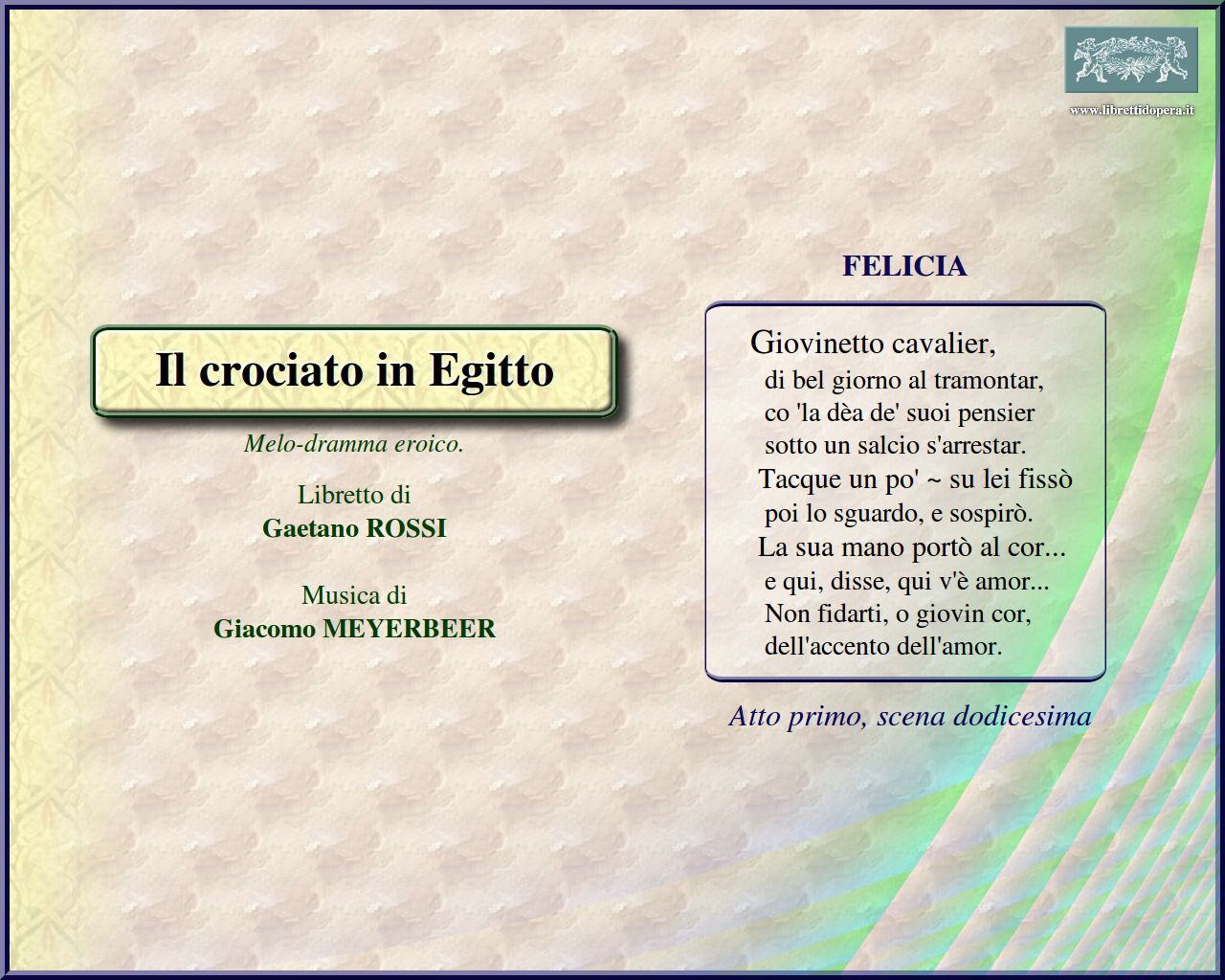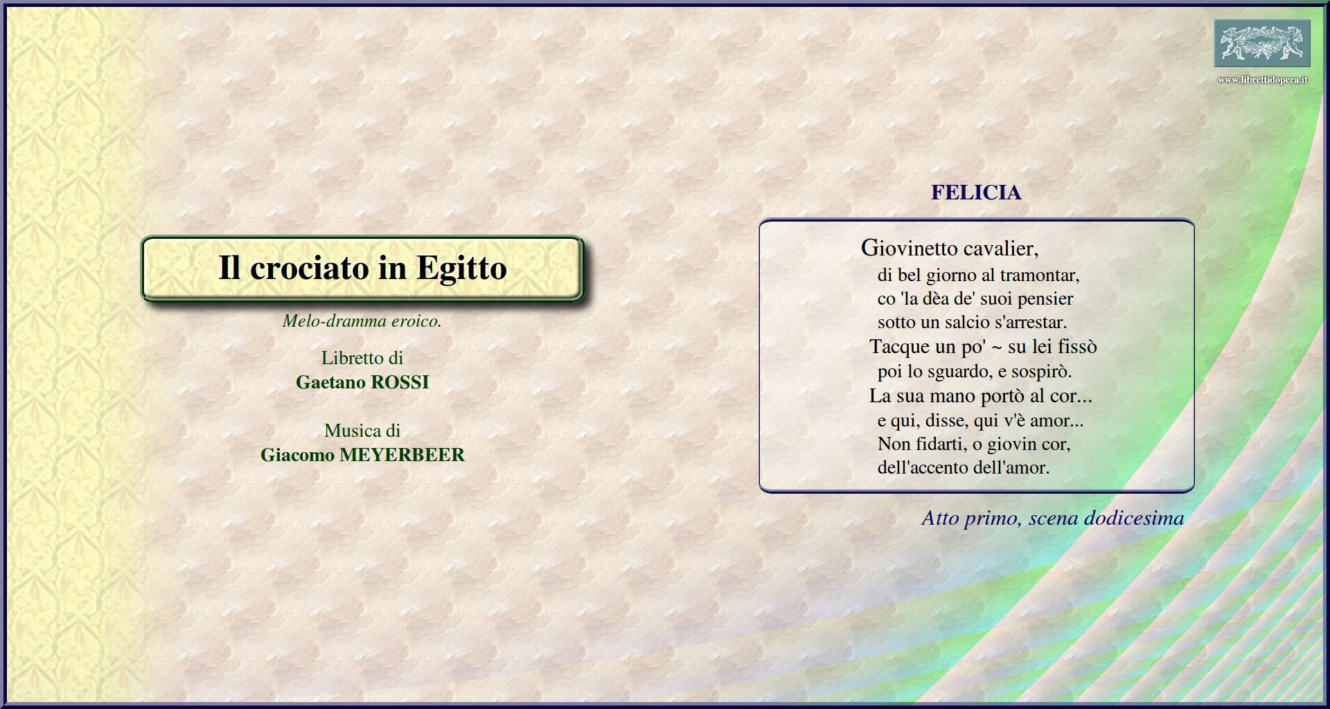 Giovinetto cavalier Guai se tuona quel bronzo tremendo Nel silenzio, fra l'orror Suona funerea