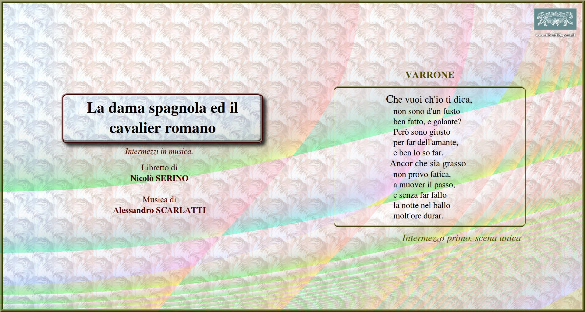 Atto primo Atto secondo Atto terzo Intermezzo primo Intermezzo secondo Intermezzo terzo