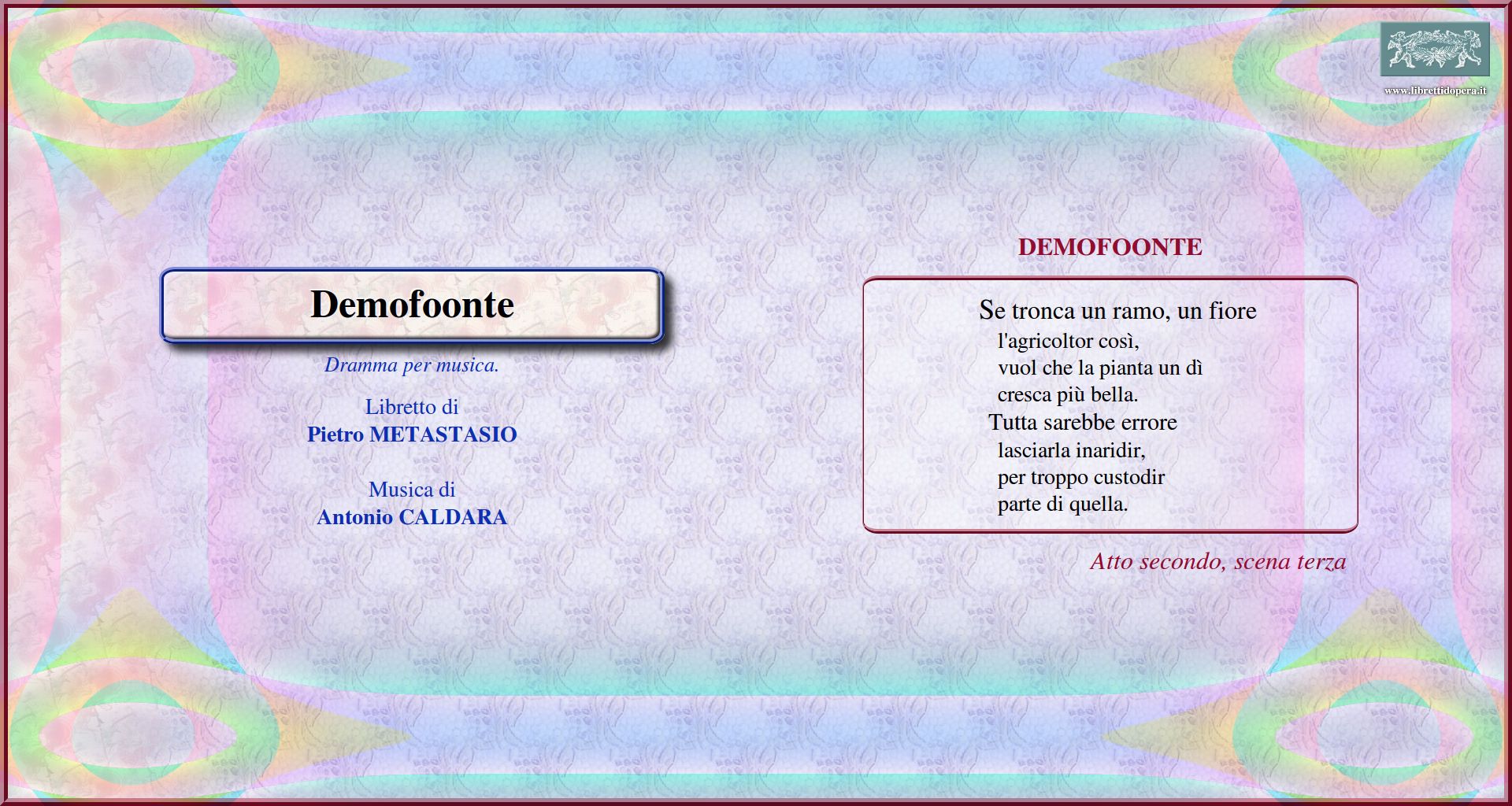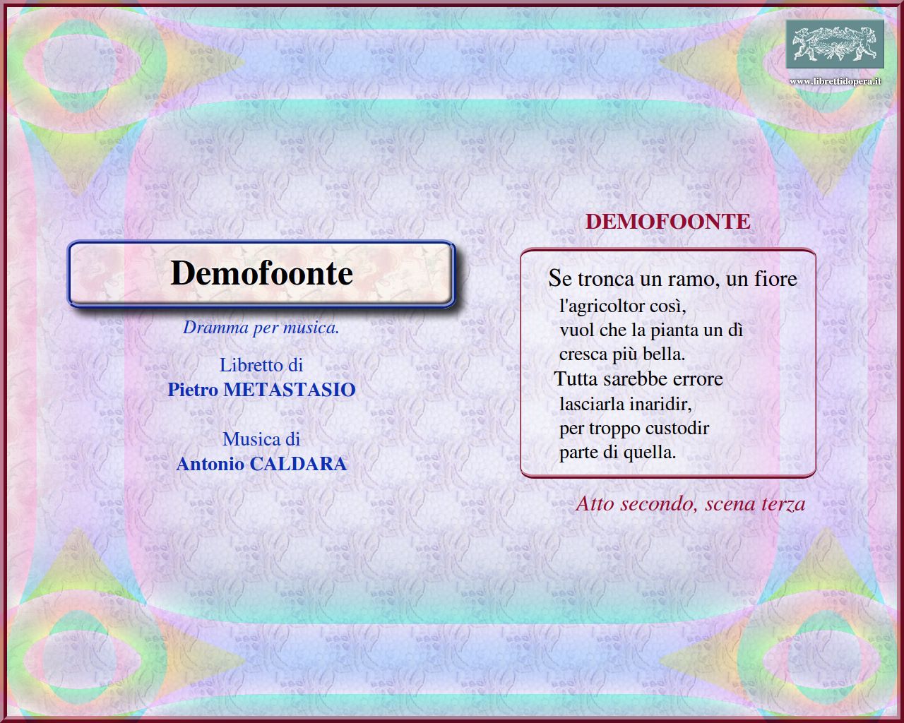 Sperai vicino il lido Se tronca un ramo, un fiore Felice età dell'oro Odo il suono de' queruli accenti Che mai risponderti Par maggiore ogni diletto