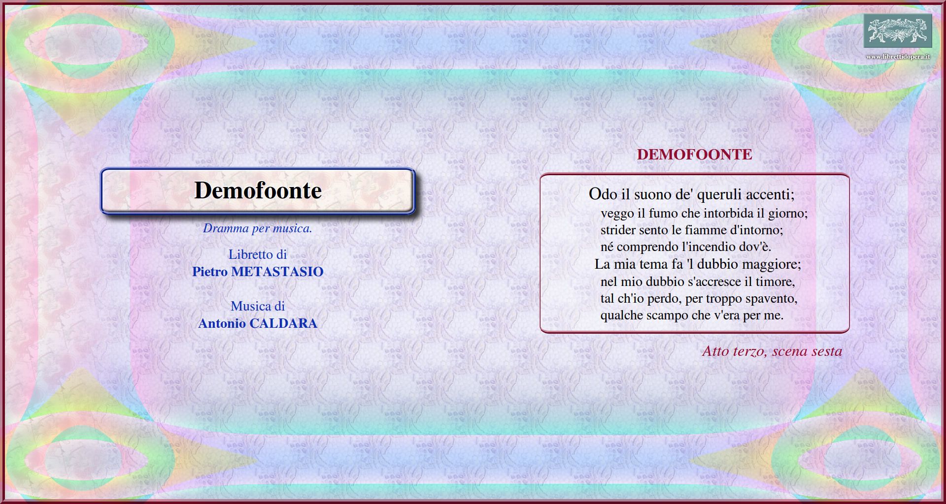 Sperai vicino il lido Se tronca un ramo, un fiore Felice età dell'oro Odo il suono de' queruli accenti Che mai risponderti Par maggiore ogni diletto