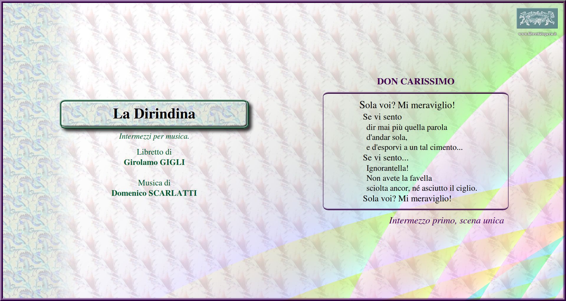 Sola voi? Mi meraviglio! Vo' cantar come a voi piace A un amante Quelle vostre pupillette