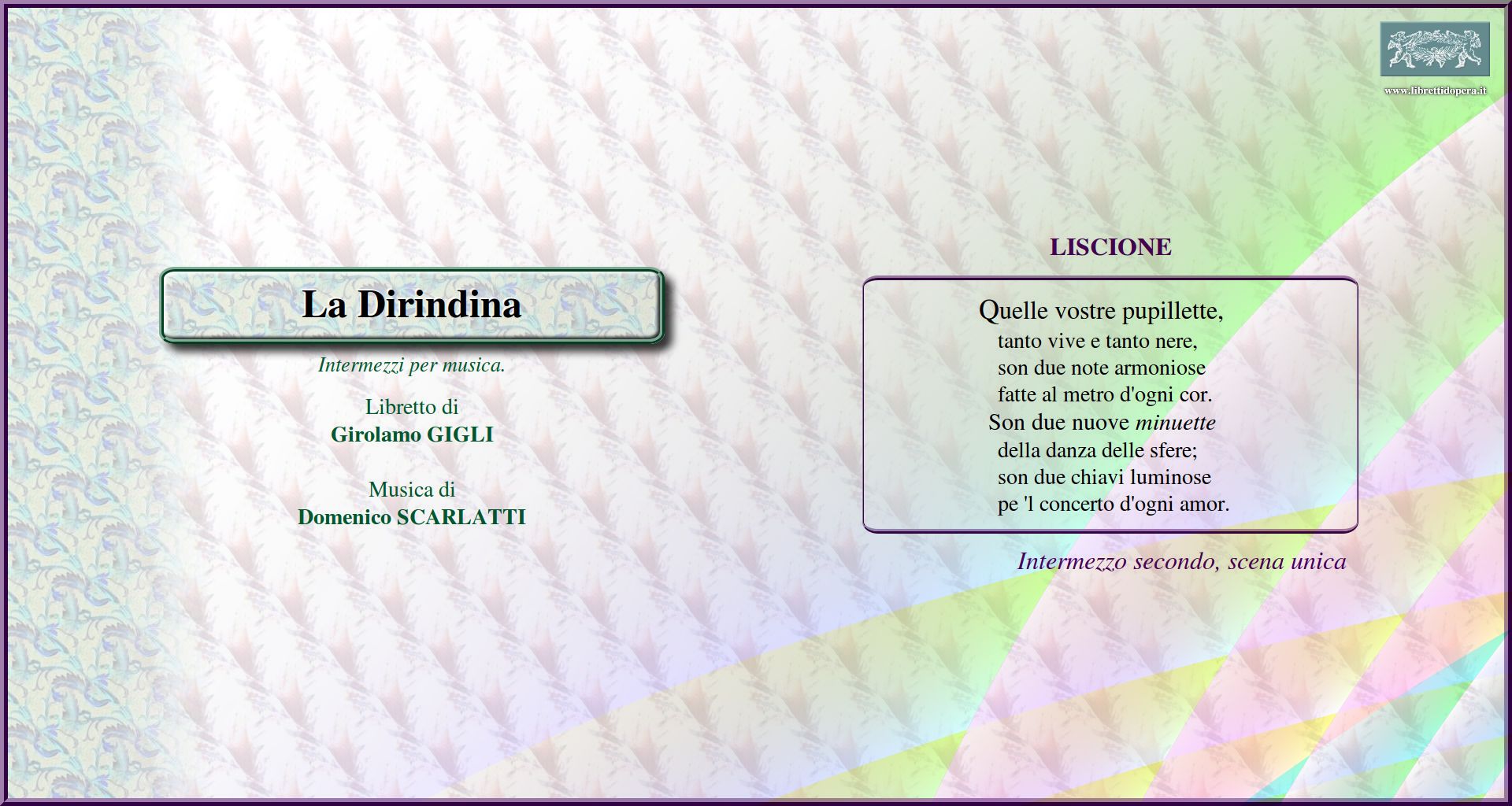 Sola voi? Mi meraviglio! Vo' cantar come a voi piace A un amante Quelle vostre pupillette