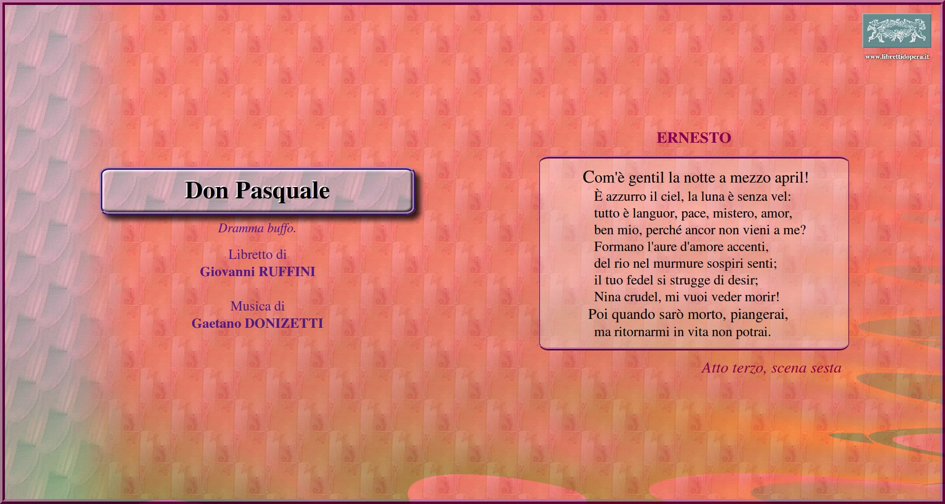 Un foco insolito Bella siccome un angelo Cercherò lontana terra Com'è gentil la notte a mezzo april!