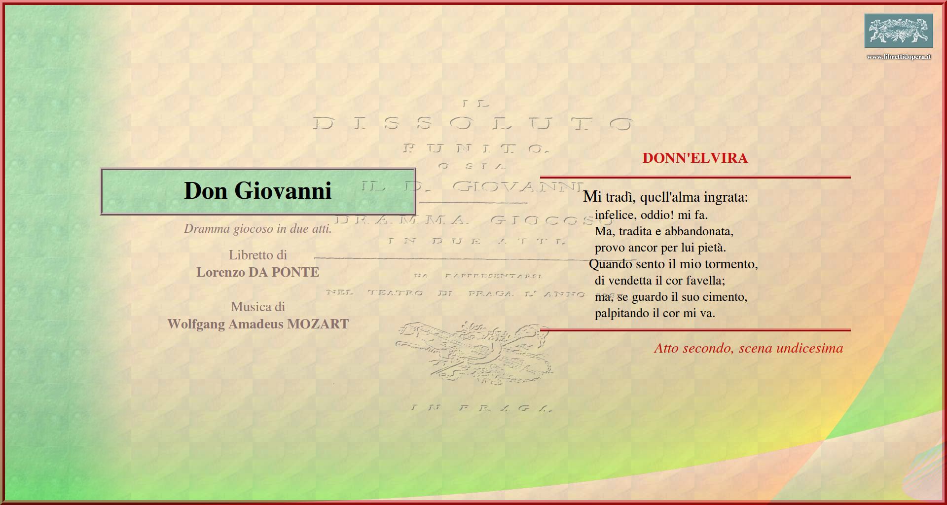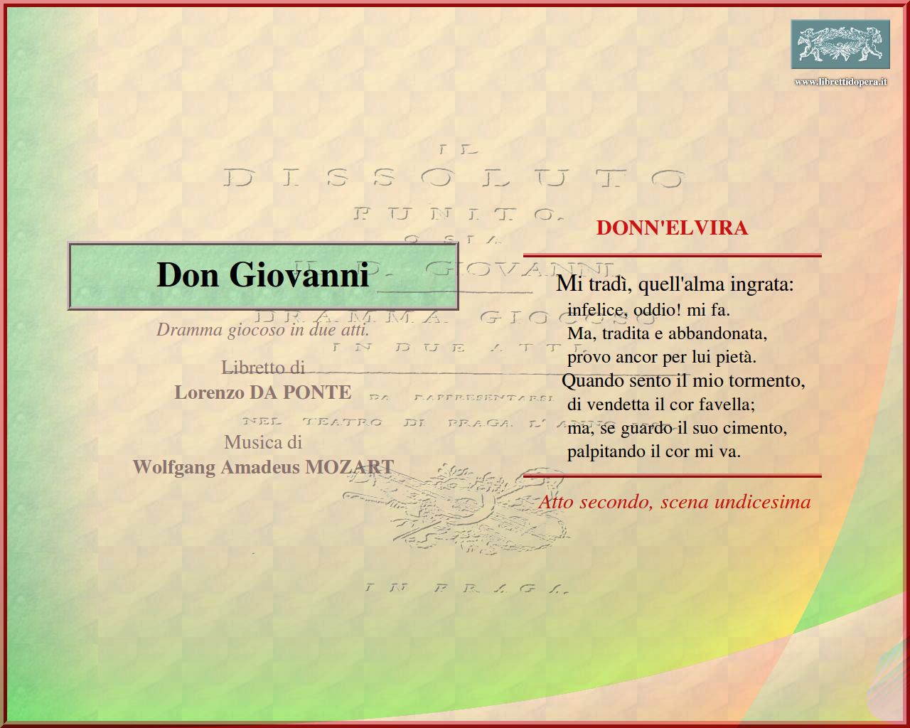 Madamina, il catalogo è questo Ho capito, signorsì! Dalla sua pace Fin ch'han dal vino Mi tradì, quell'alma ingrata Don Giovanni! a cenar teco