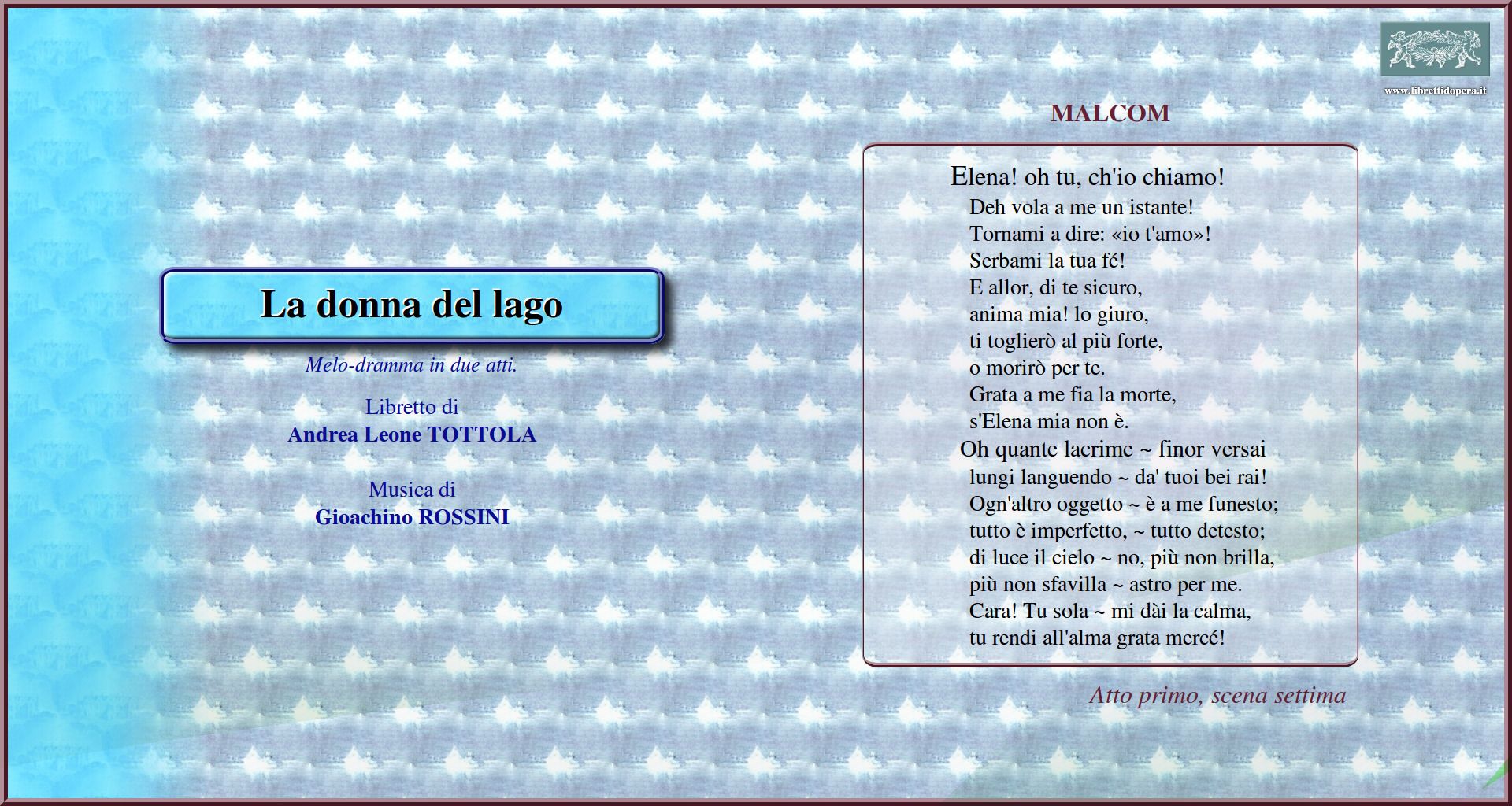 Oh mattutini albori! Elena! oh tu, ch'io chiamo! Oh fiamma soave Tanti affetti in un momento