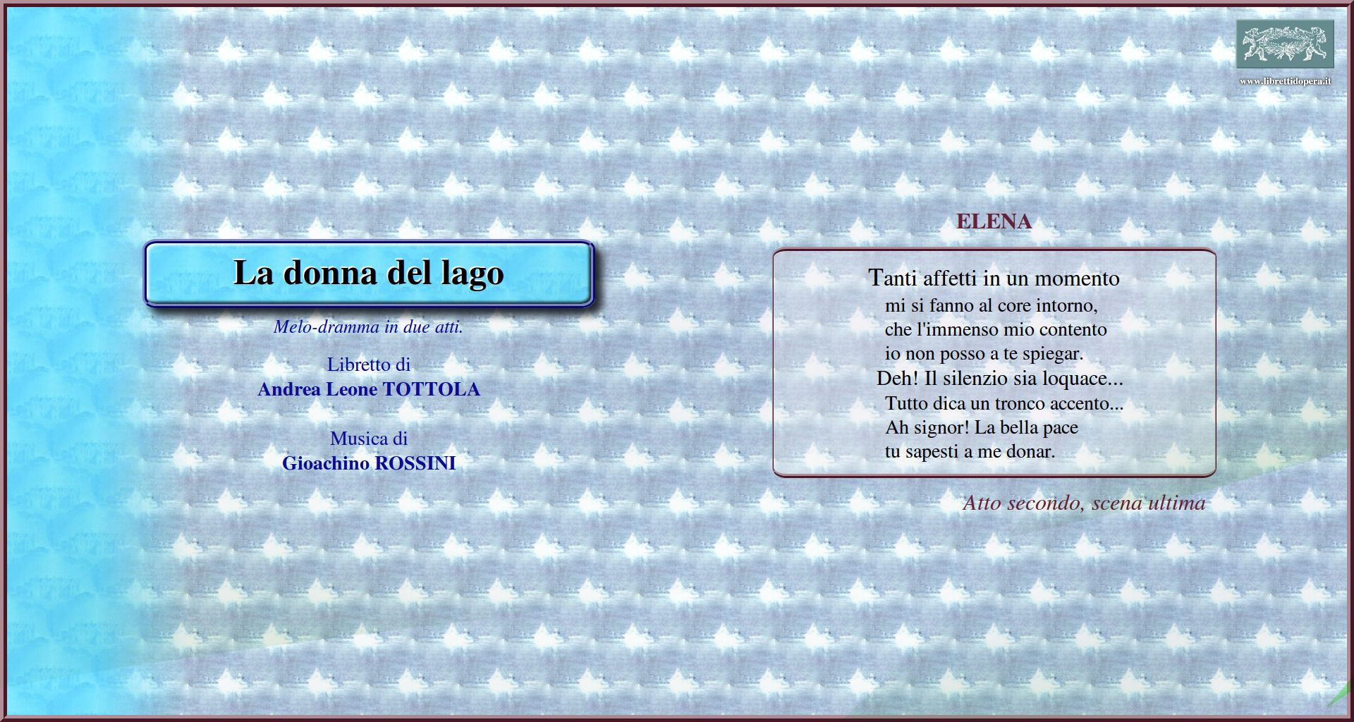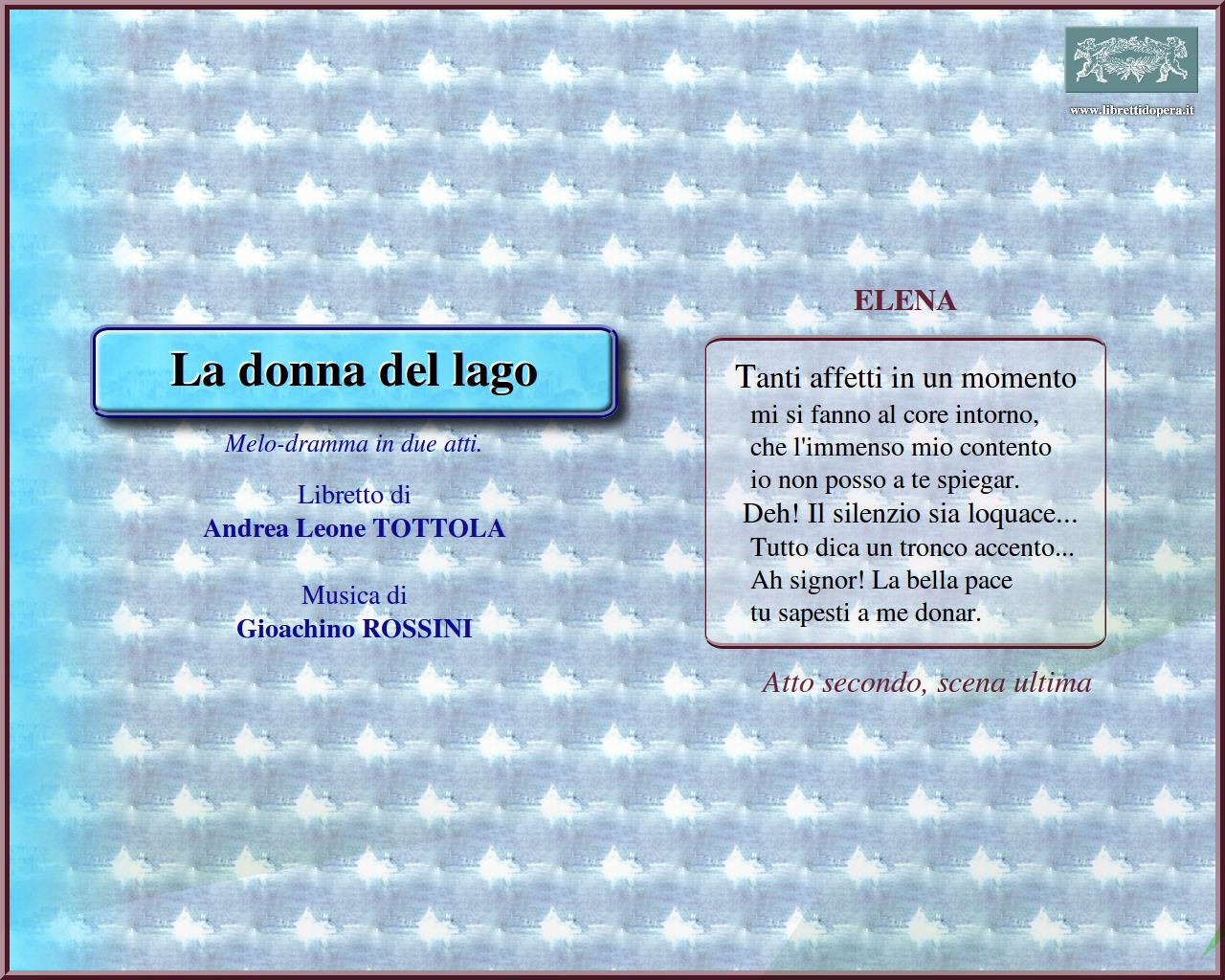 Oh mattutini albori! Elena! oh tu, ch'io chiamo! Oh fiamma soave Tanti affetti in un momento