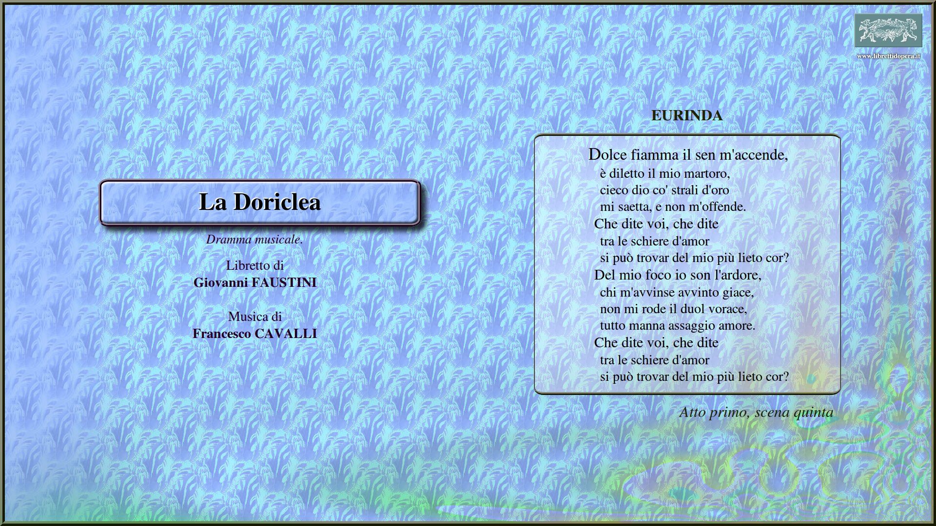 Son pur tutta bellezza Dolce fiamma il sen m'accende Siami il tutto inclemente