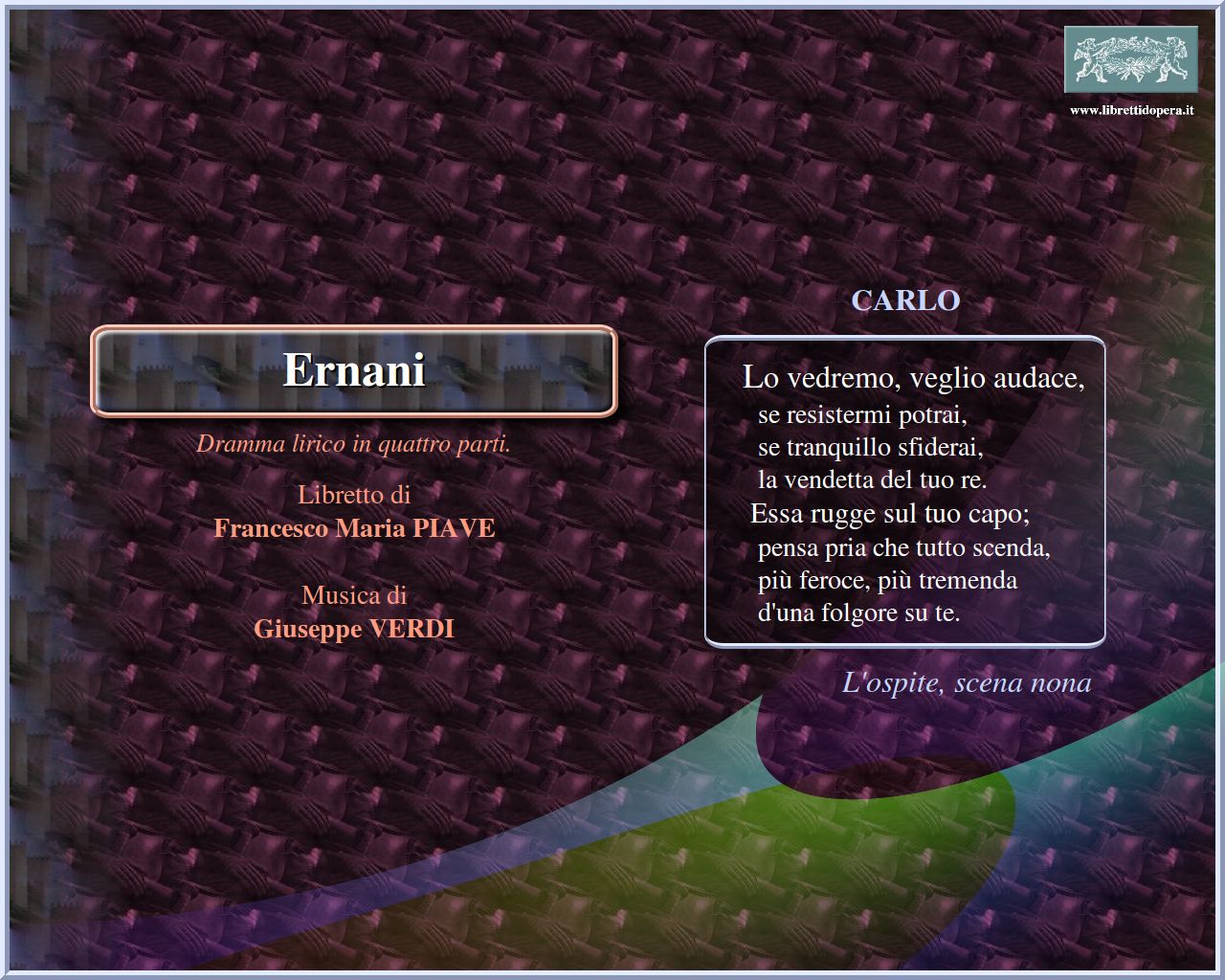 Allegri!... beviamo! Nel vino cerchiamo Lo vedremo, veglio audace Si ridesti il Leon di Castiglia Solingo, errante, misero