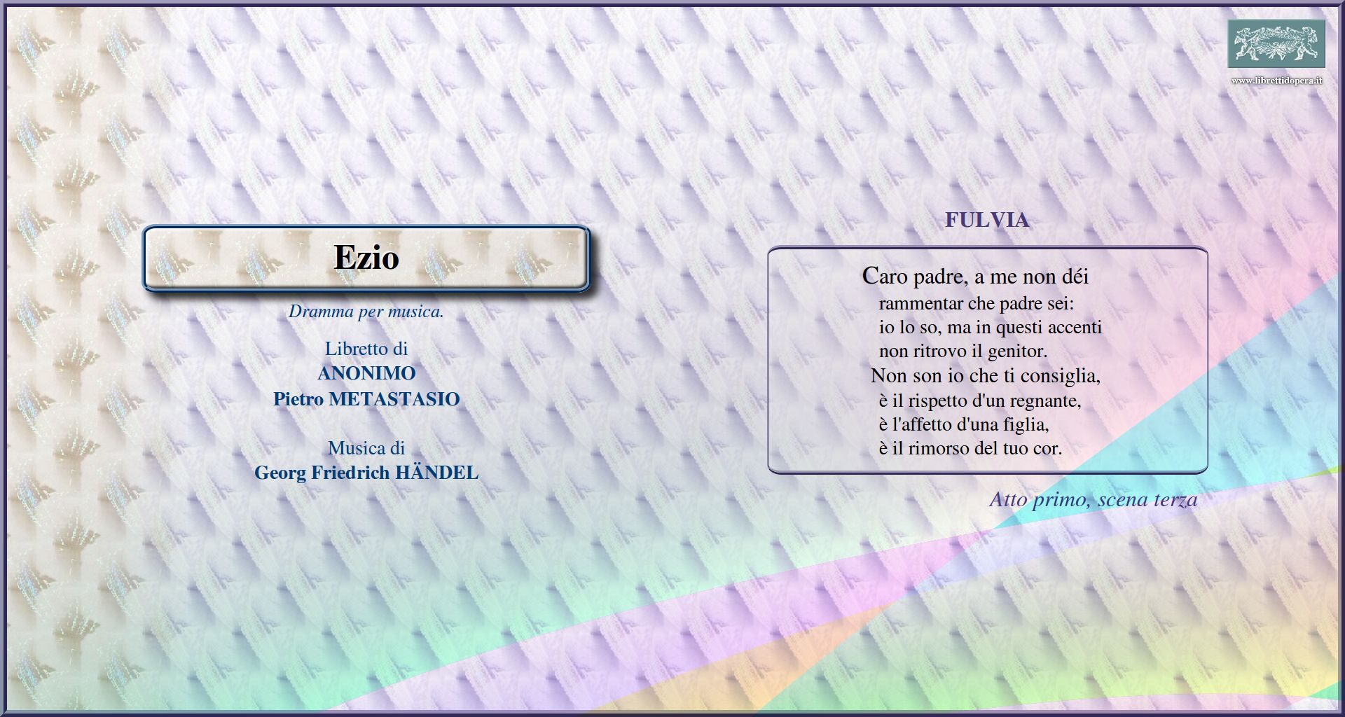 Caro padre, a me non déi Il nocchier, che si figura Ecco alle mie catene Ah, non son io che parlo