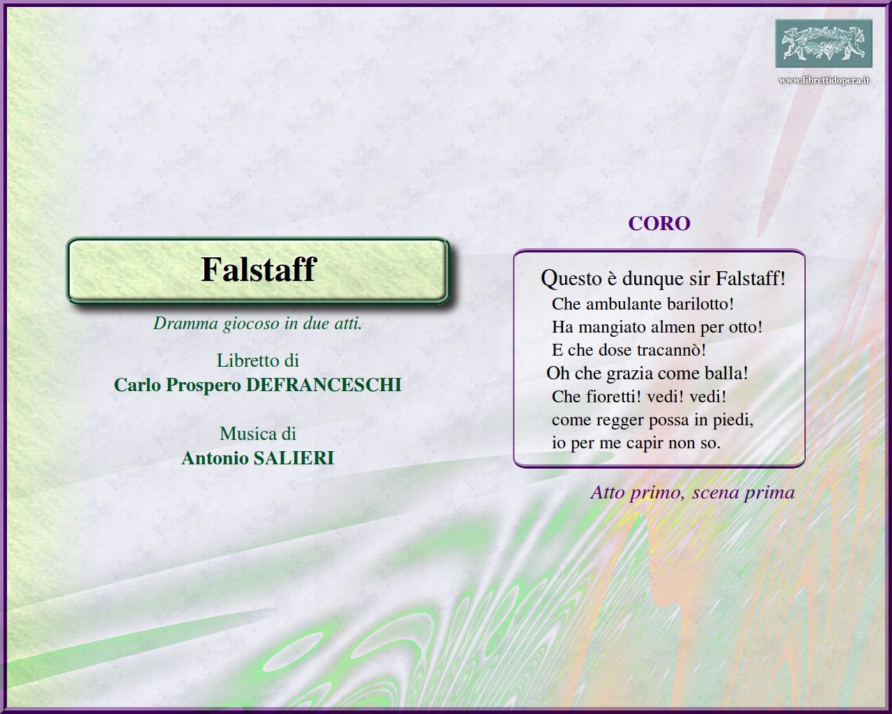 Questo è dunque sir Falstaff! Nell'impero di Cupido Ad un uom come son io!