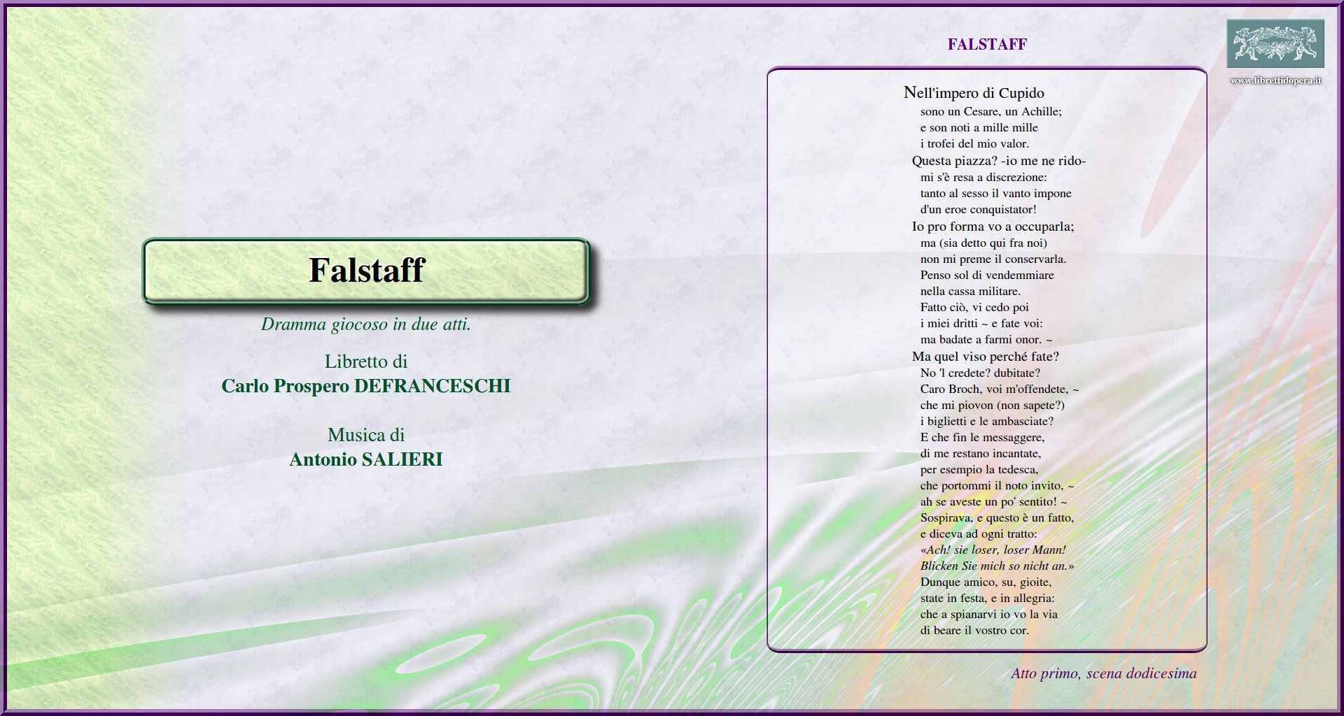 Questo è dunque sir Falstaff! Nell'impero di Cupido Ad un uom come son io!