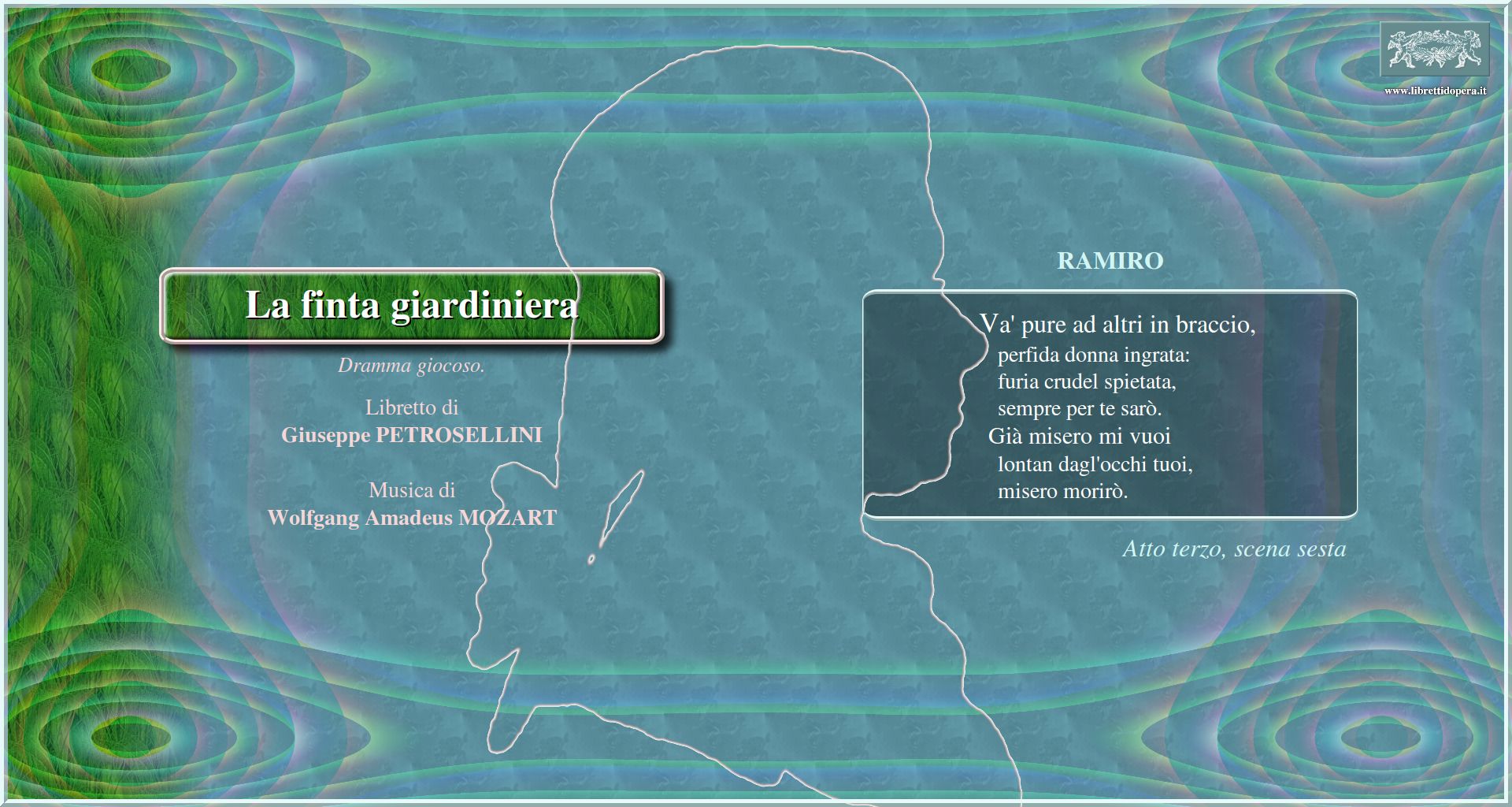 Da scirocco a tramontana Vorrei punirti indegno Ah dal pianto, dal singhiozzo Crudeli, oh dio! Fermate Va' pure ad altri in braccio