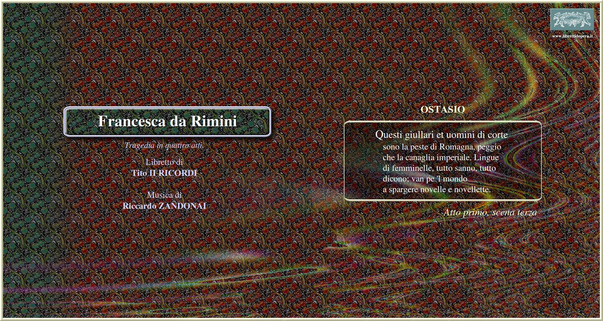 Questi giullari et uomini di corte Il fuoco greco! Chi si salva? Paolo, datemi pace! Vieni, vieni, Francesca!
