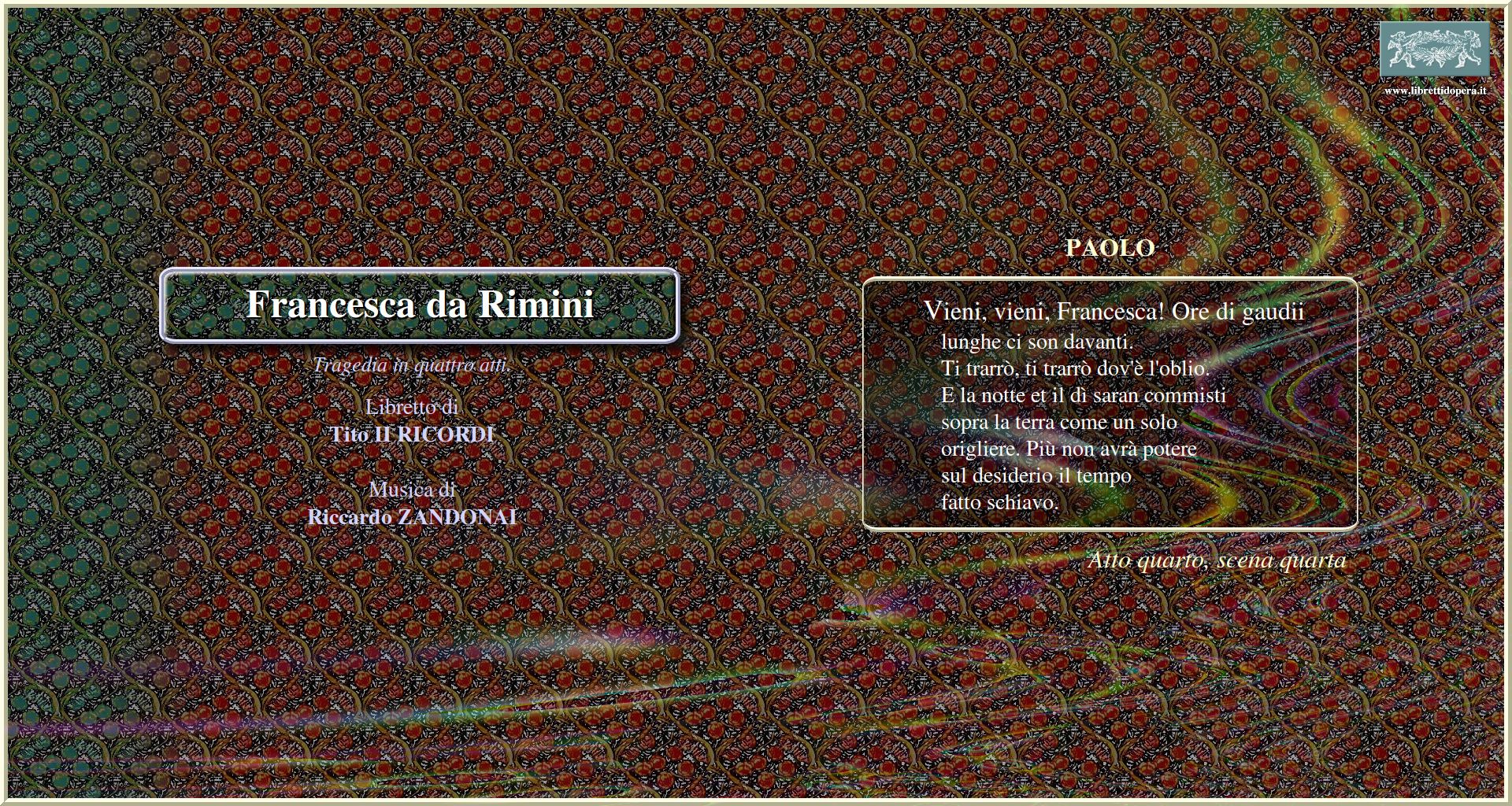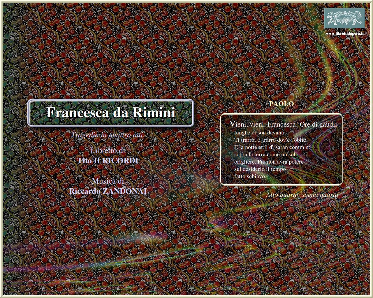 Questi giullari et uomini di corte Il fuoco greco! Chi si salva? Paolo, datemi pace! Vieni, vieni, Francesca!