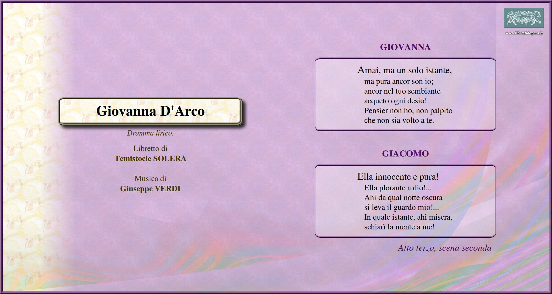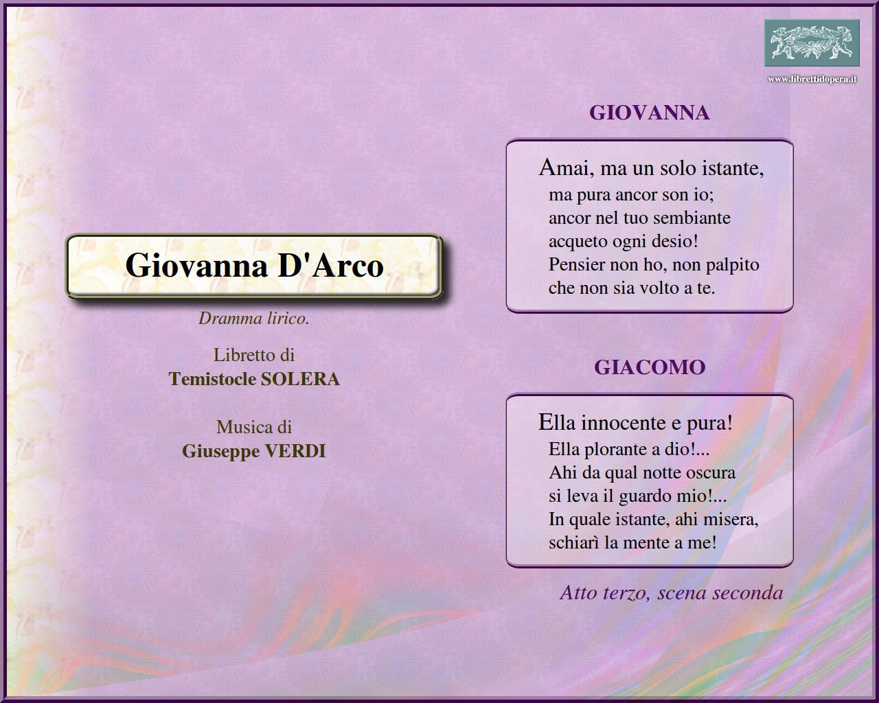 O fatidica foresta Dunque, o cruda, e gloria e trono Amai, ma un solo istante Quale più fido amico